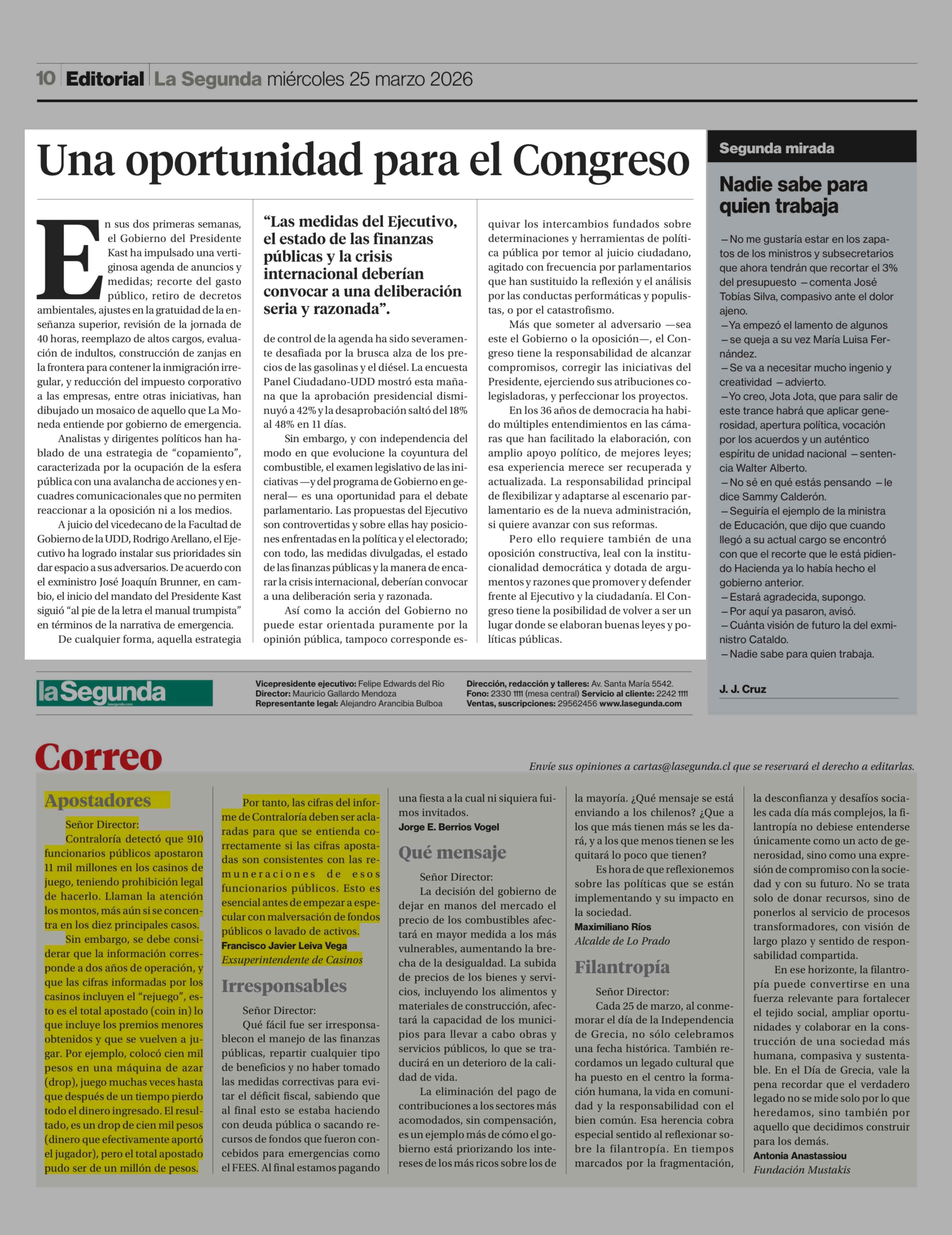 Editorial: Una oportunidad para el Congreso 25-03-2026 La Segunda |