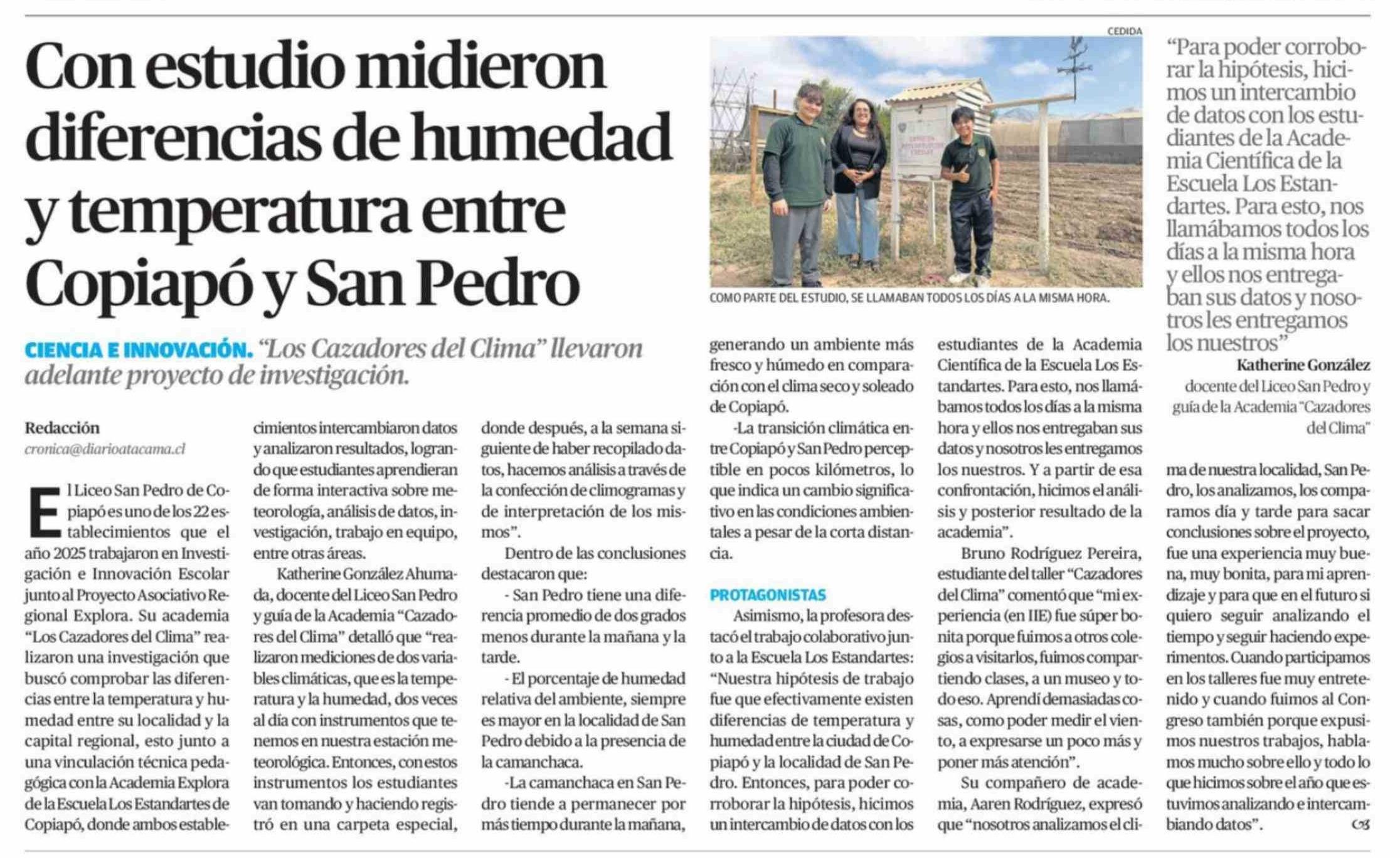 Con estudio midieron diferencias de humedad y temperatura entre Copiapó y San Pedro 29-03-2026 El Diario de Atacama |