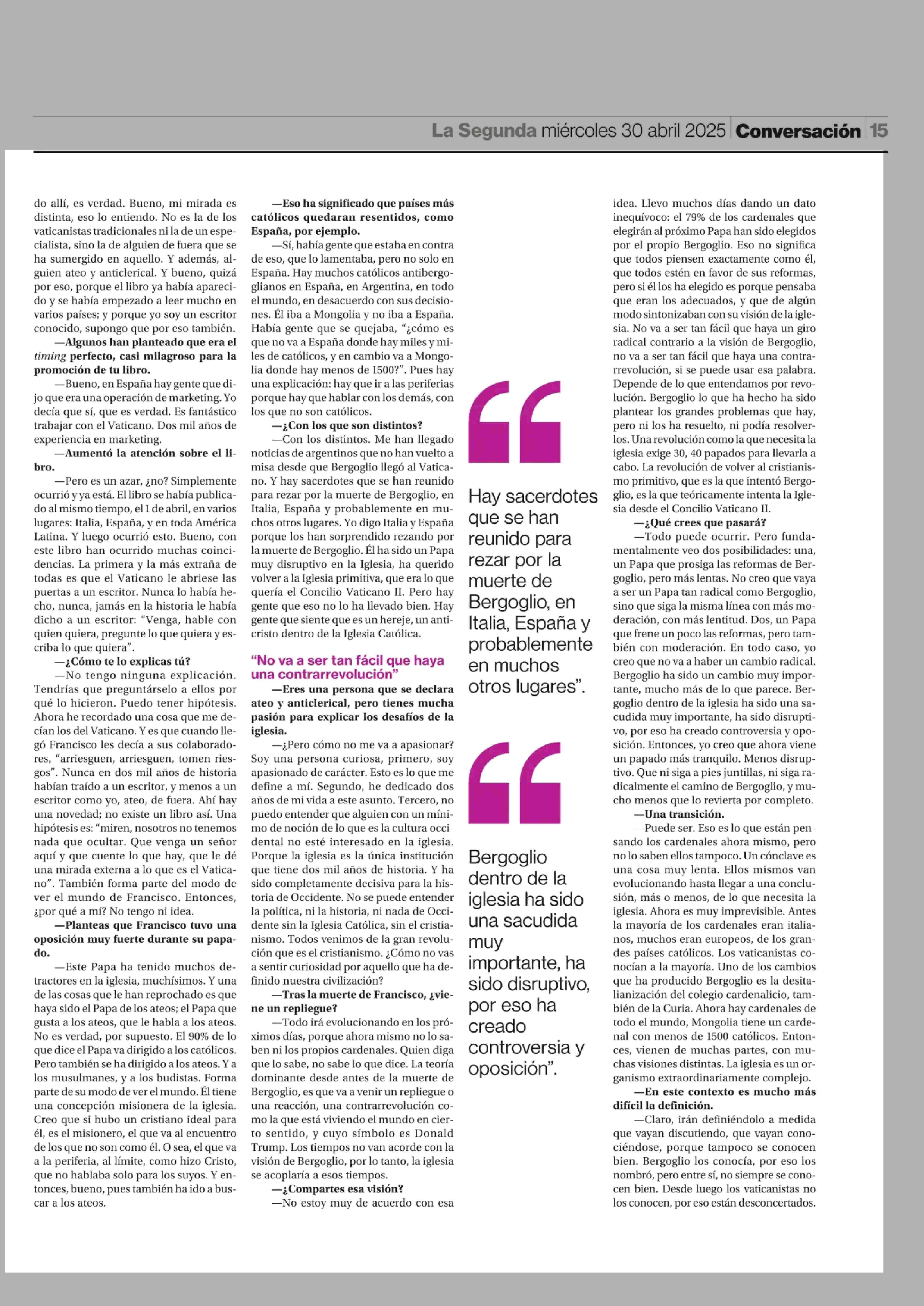 “Hay gente que siente que Bergoglio es un hereje, un anticristo” 30-04-2025 La Segunda |