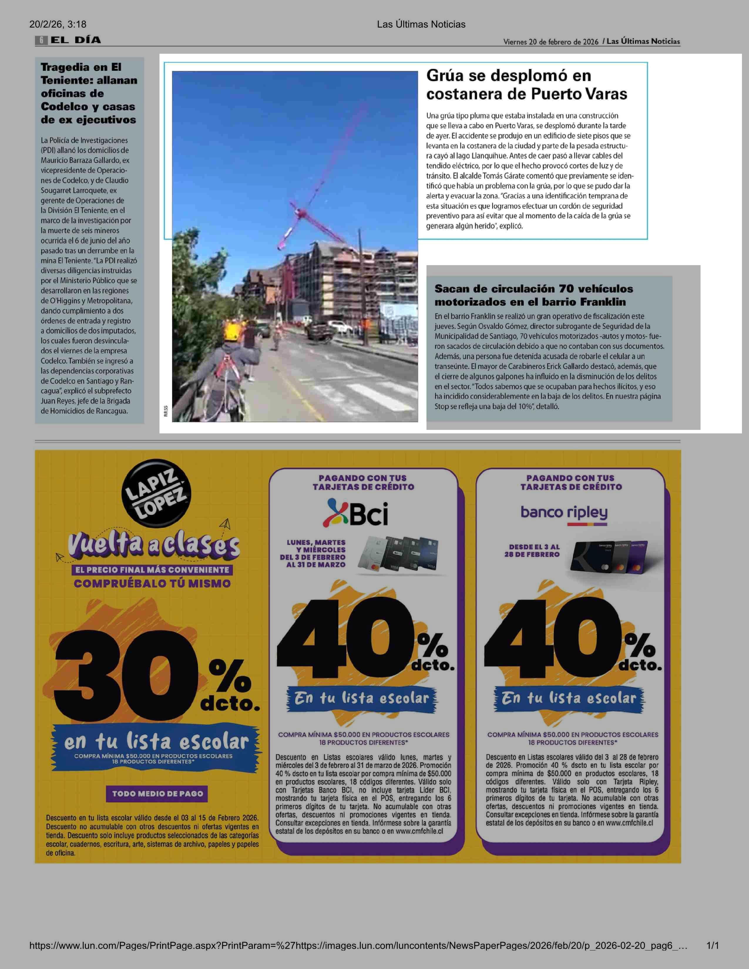20-02-2026 Las Últimas Noticias