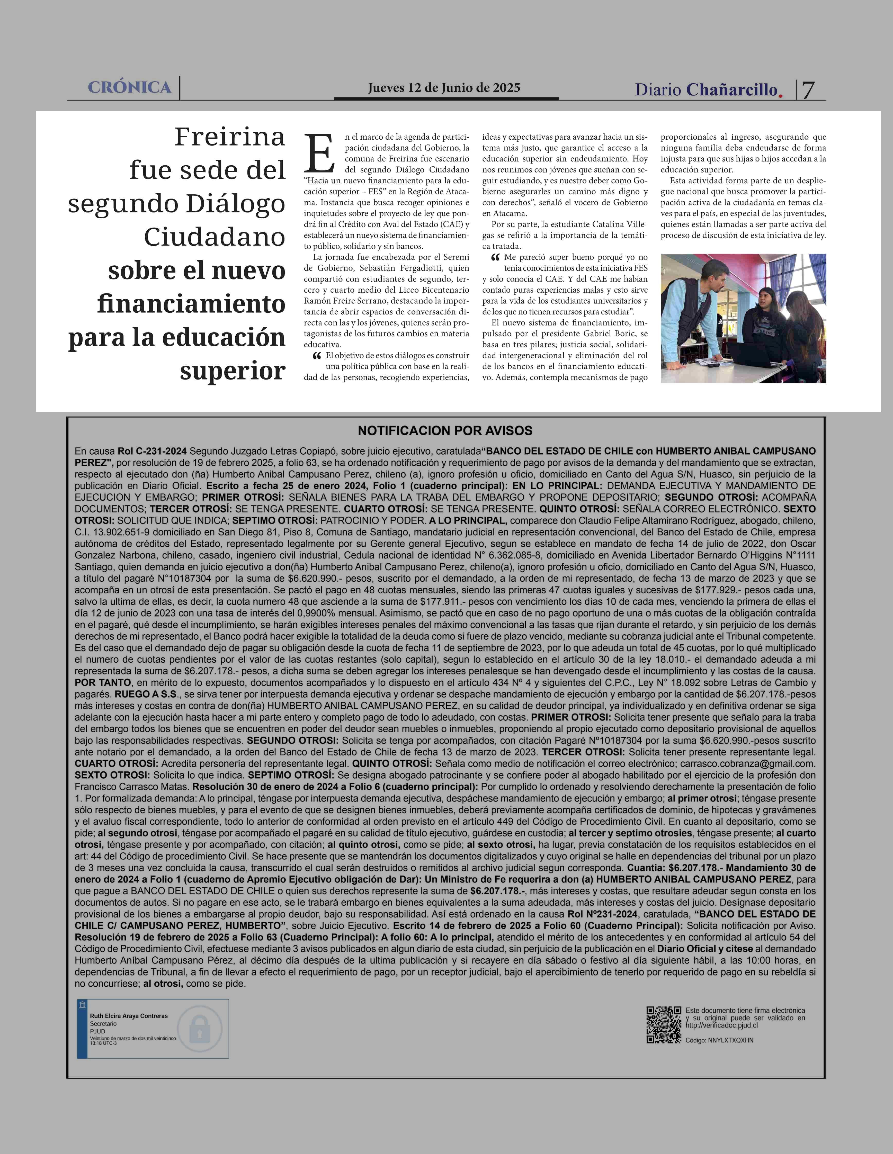 Freirina fue sede del segundo Diálogo Ciudadano sobre el nuevo financiamiento para la educación superior 12-06-2025 Diario Chañarcillo |