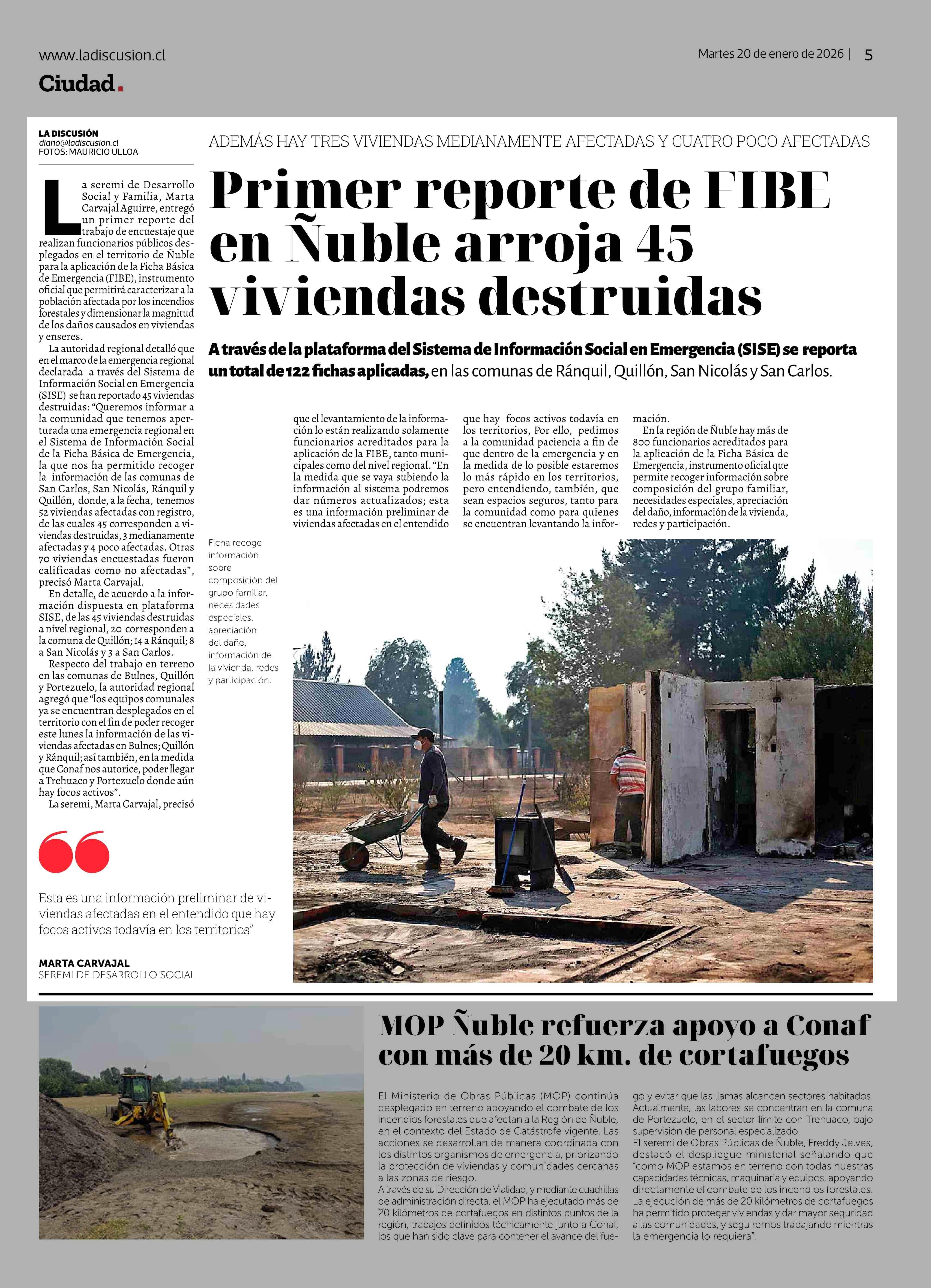 Fecha: 20-01-2026 Sector: Noticia general Región: Región del Ñuble