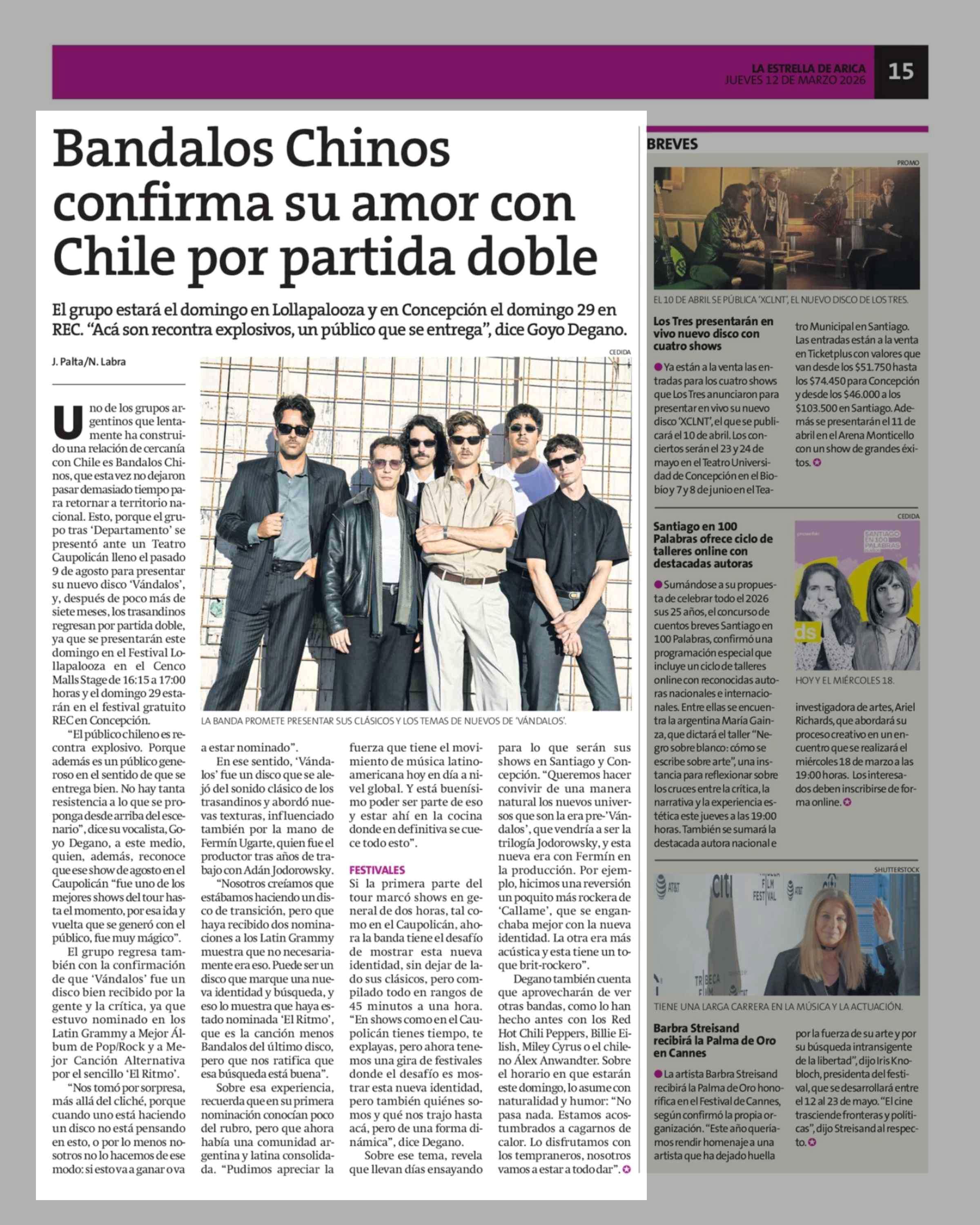 Bandalos Chinos confirma su amor con Chile por partida doble 12-03-2026 La Estrella de Arica |