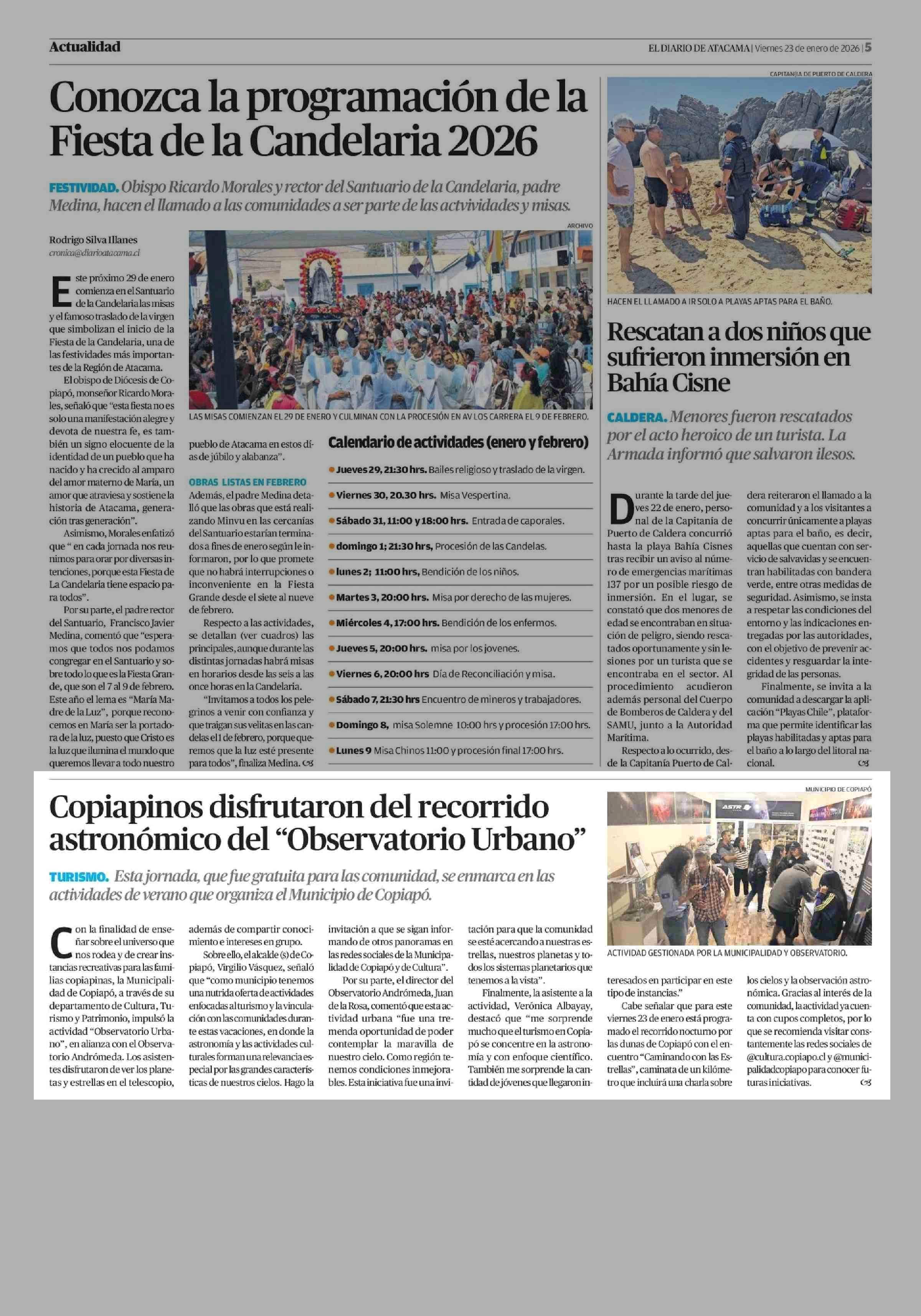 | Fecha: | 23-01-2026 | Sector: | Noticia general | Región: | Región de Atacama |