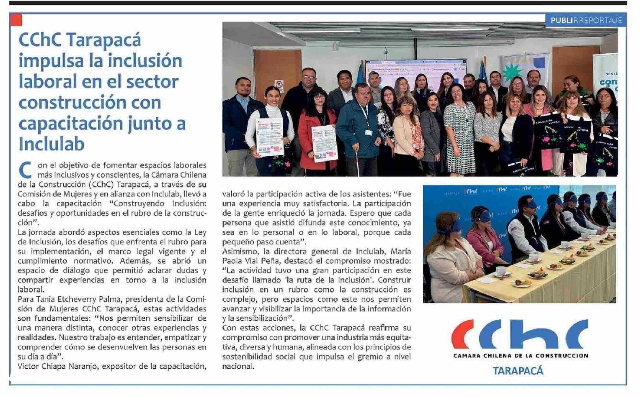 | Título: | CChC Tarapacá impulsa la inclusión laboral en el sector construcción con capacitación junto a Inclulab |