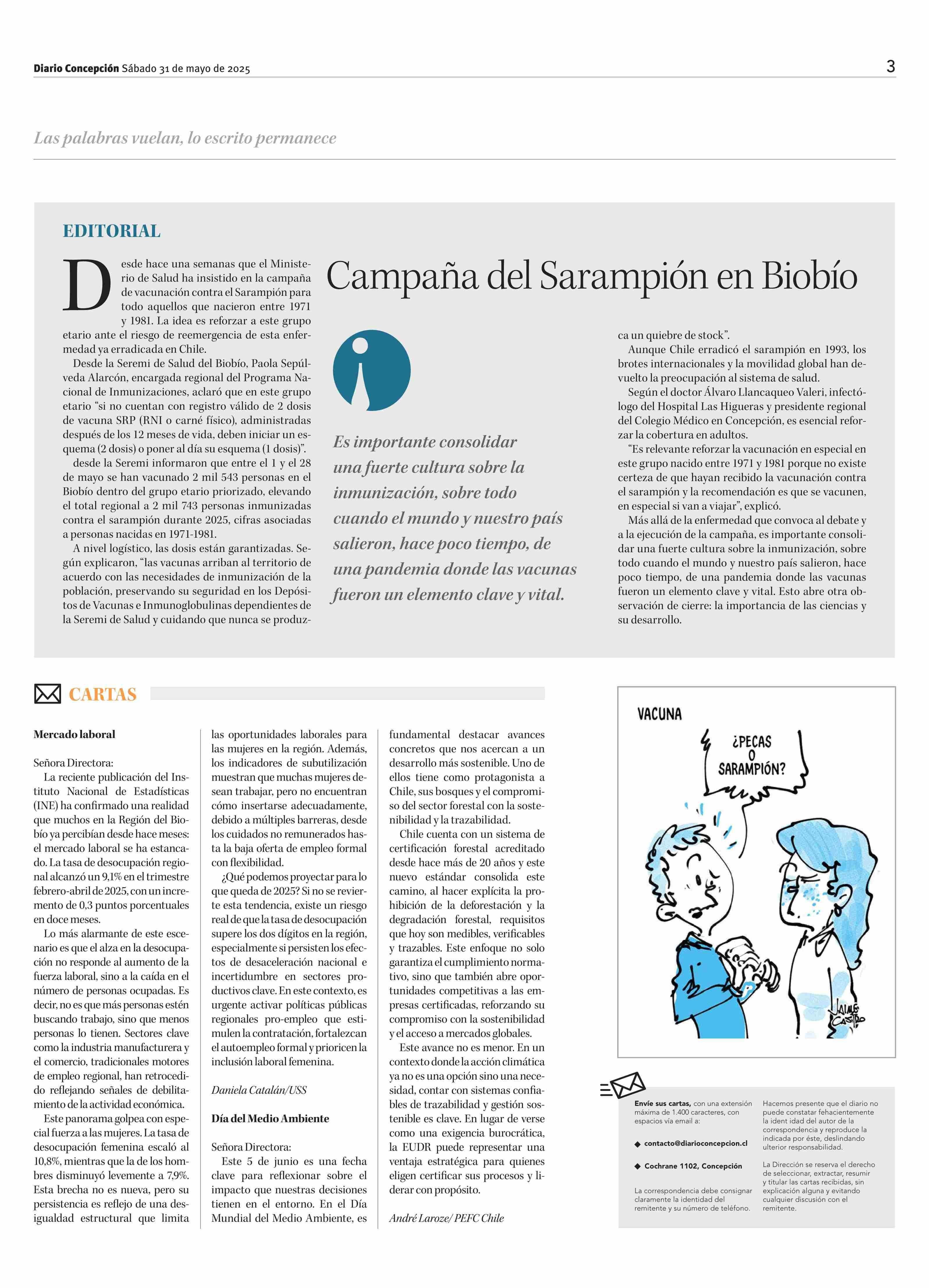 CARTAS: Día del Medio Ambiente 31-05-2025 Diario Concepción |