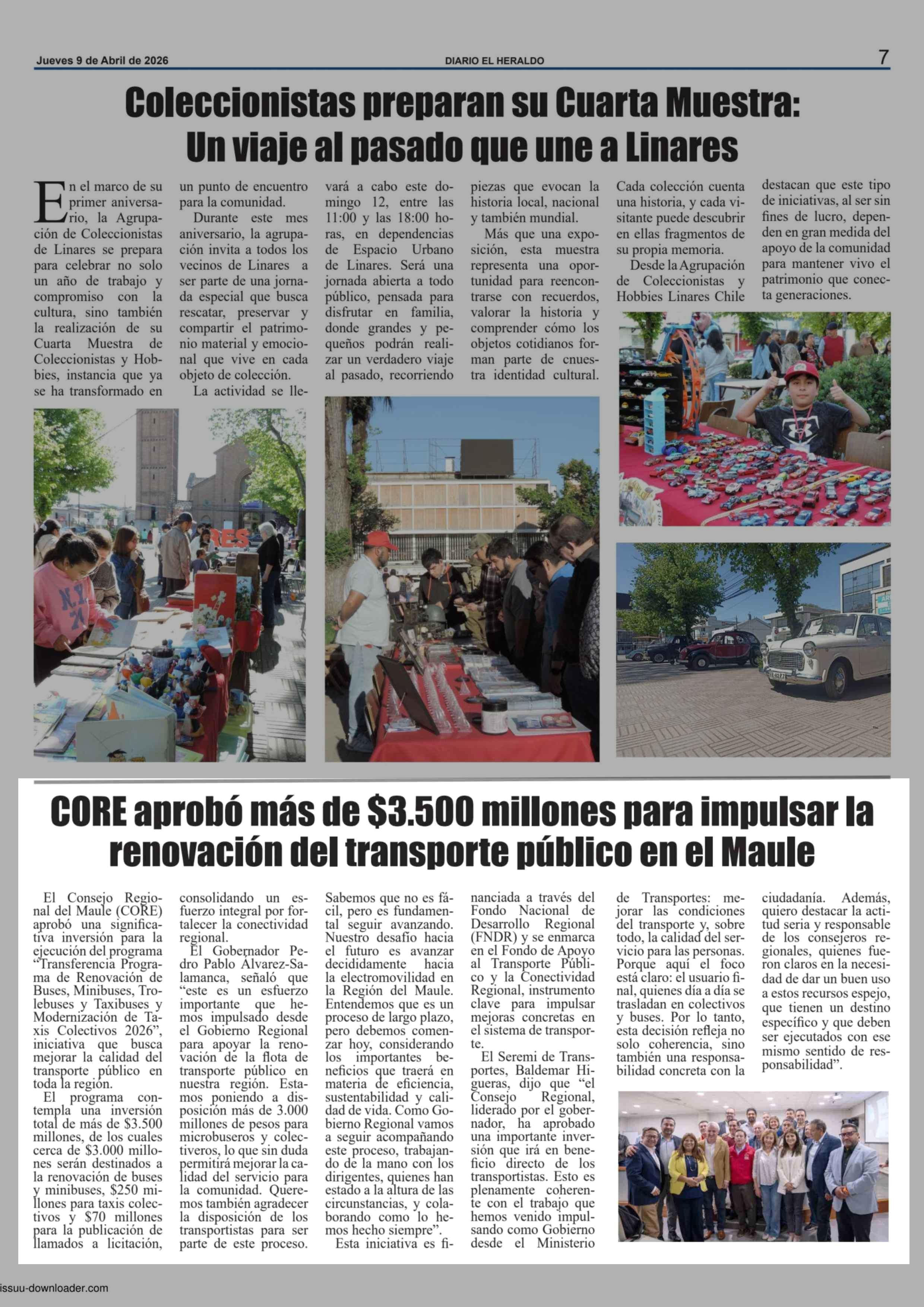 CORE aprobó más de $3.500 millones para impulsar la renovación del transporte público en el Maule 09-04-2026 El Heraldo |
