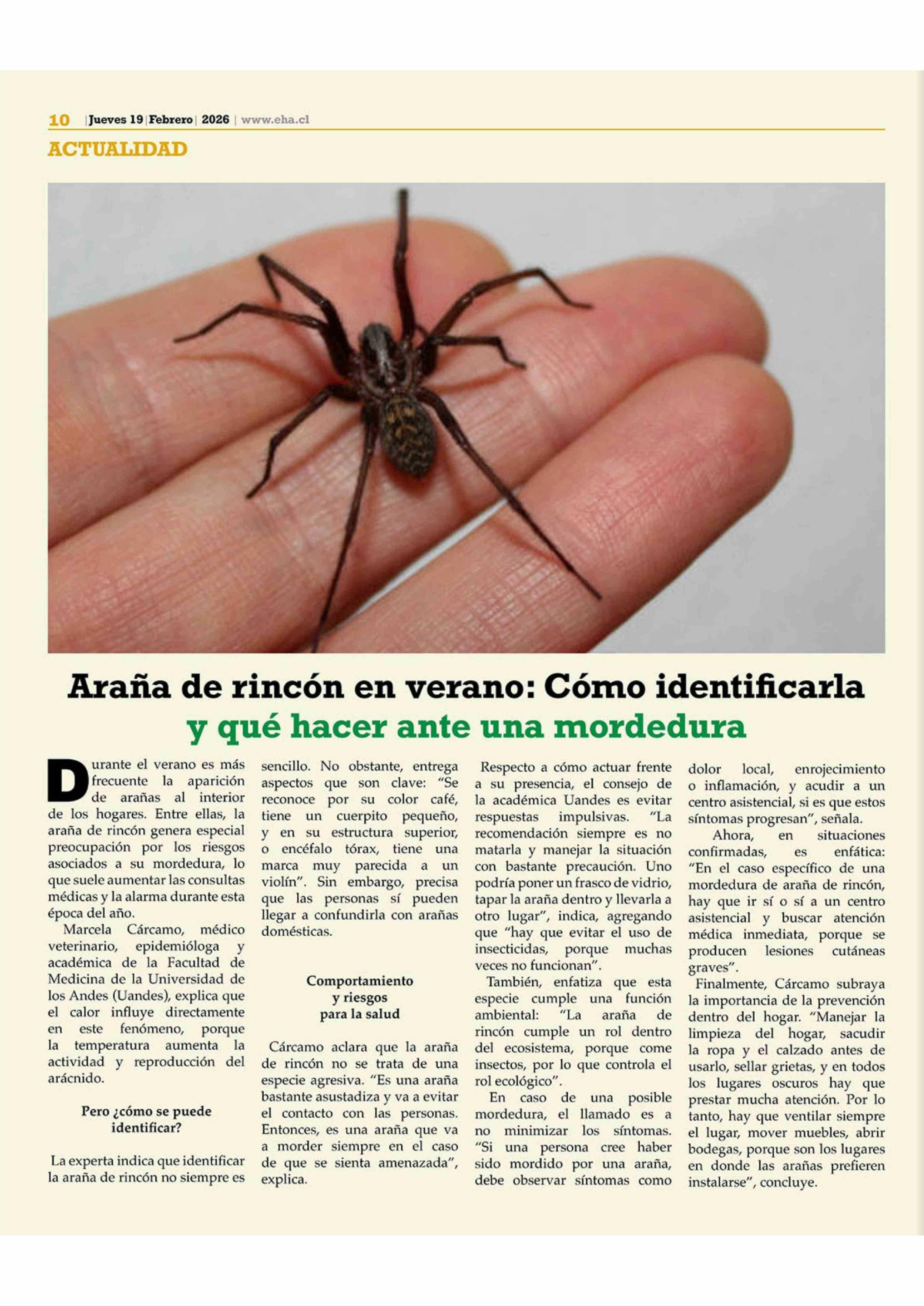 Araña de rincón en verano: Cómo identificarla y qué hacer ante una mordedura 19-02-2026 El Heraldo Austral |