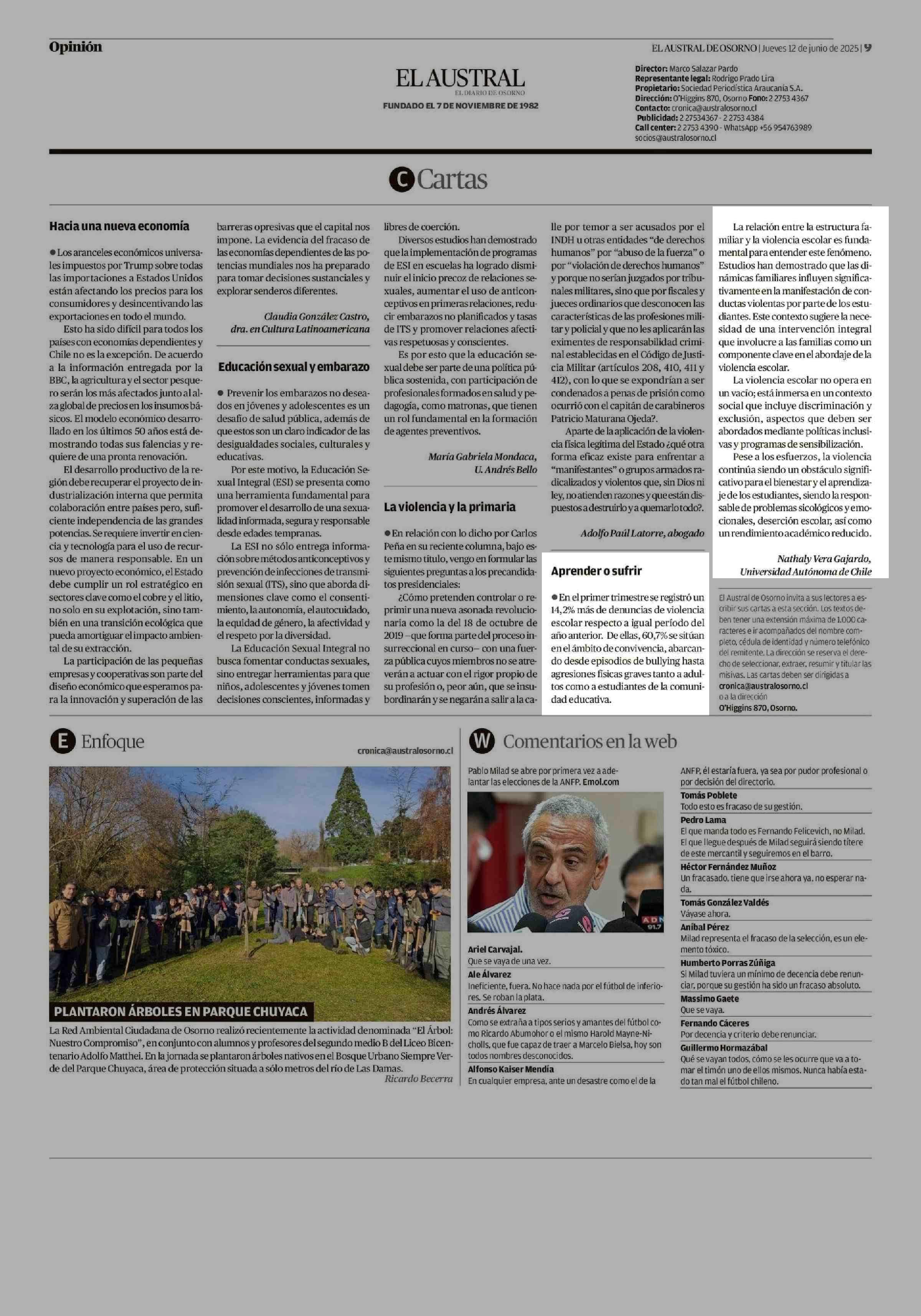 CARTAS: Aprender o sufrir 12-06-2025 El Austral de Osorno |