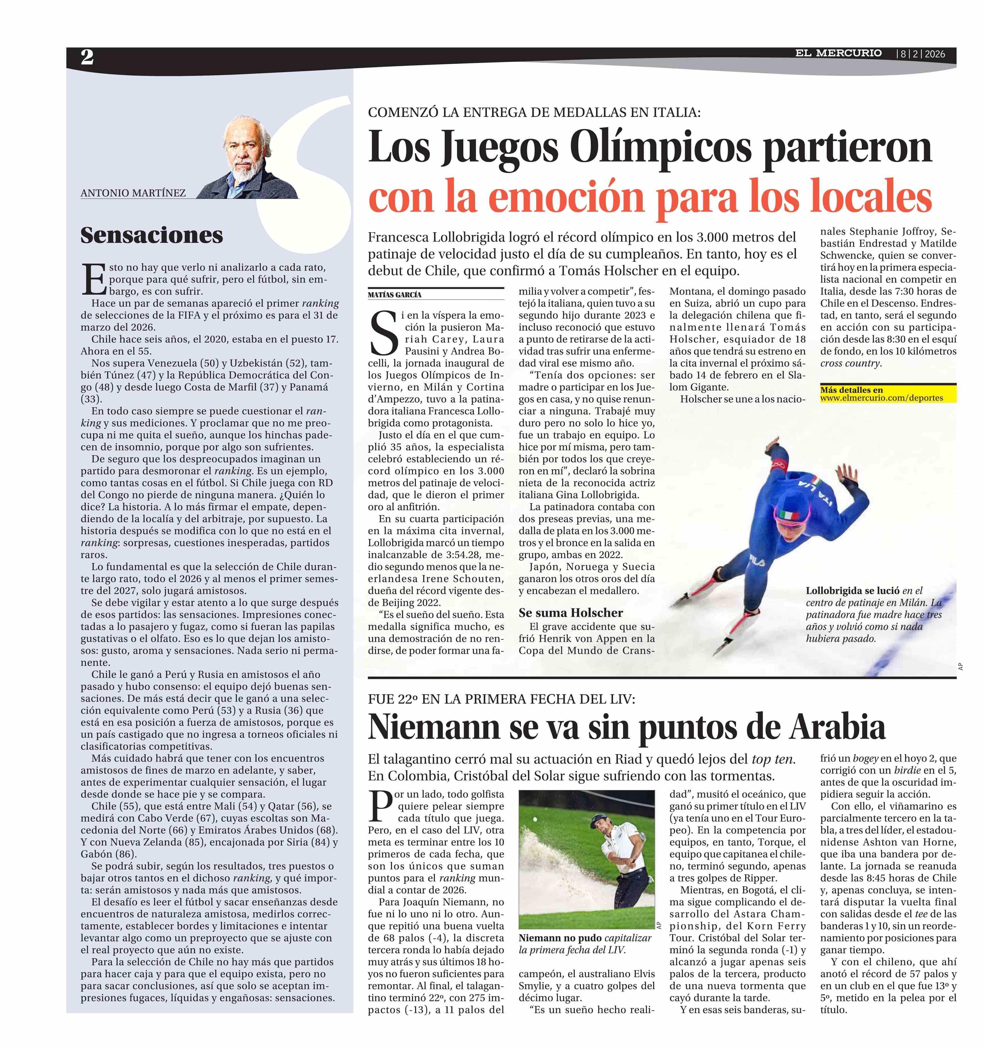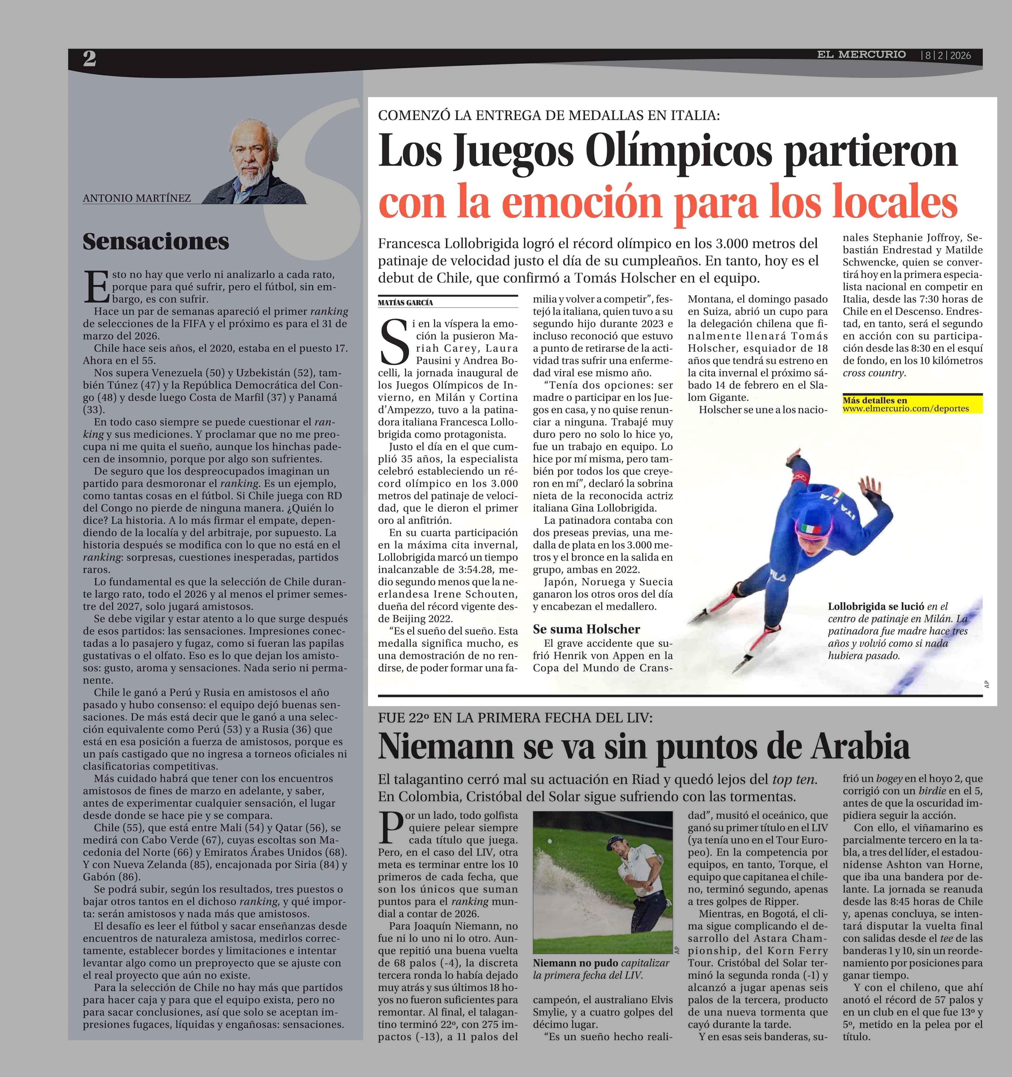 Los Juegos Olímpicos partieron con la emoción para los locales 08-02-2026 El Mercurio |