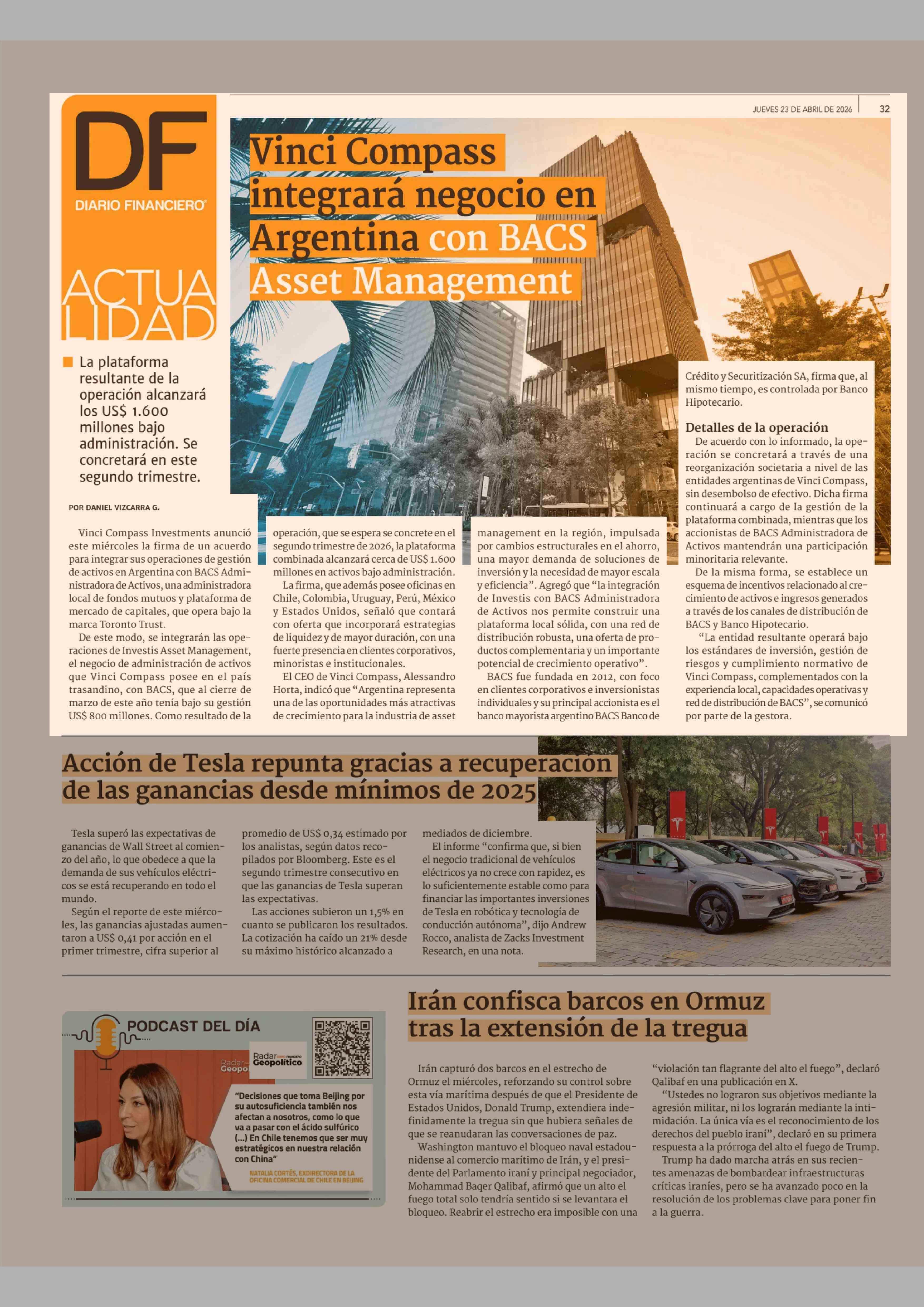 Título: Vinci Compass integrará negocio en Argentina con BACS Asset Management