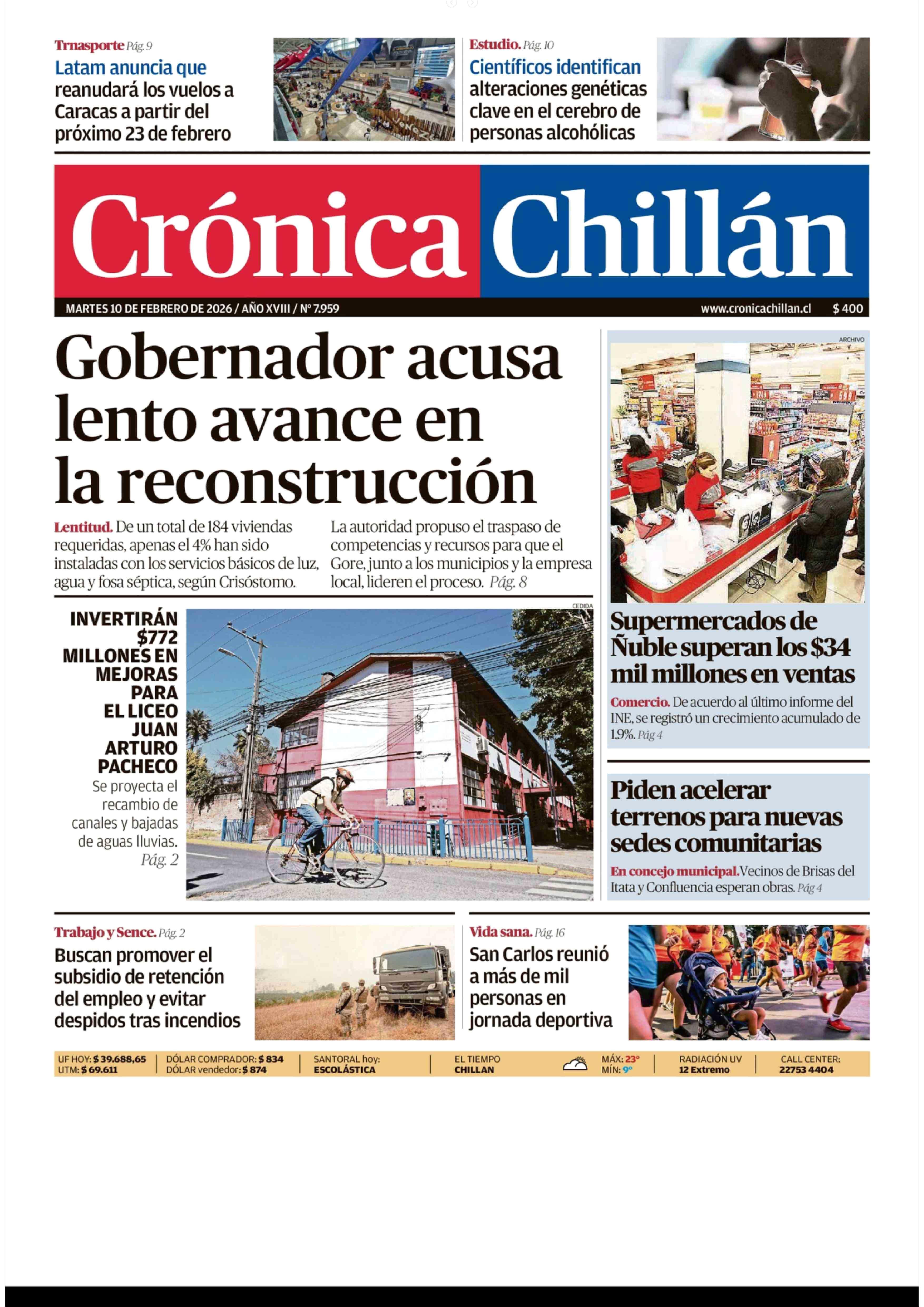 Fecha: 10-02-2026 Sector: Portada Región: Región del Ñuble