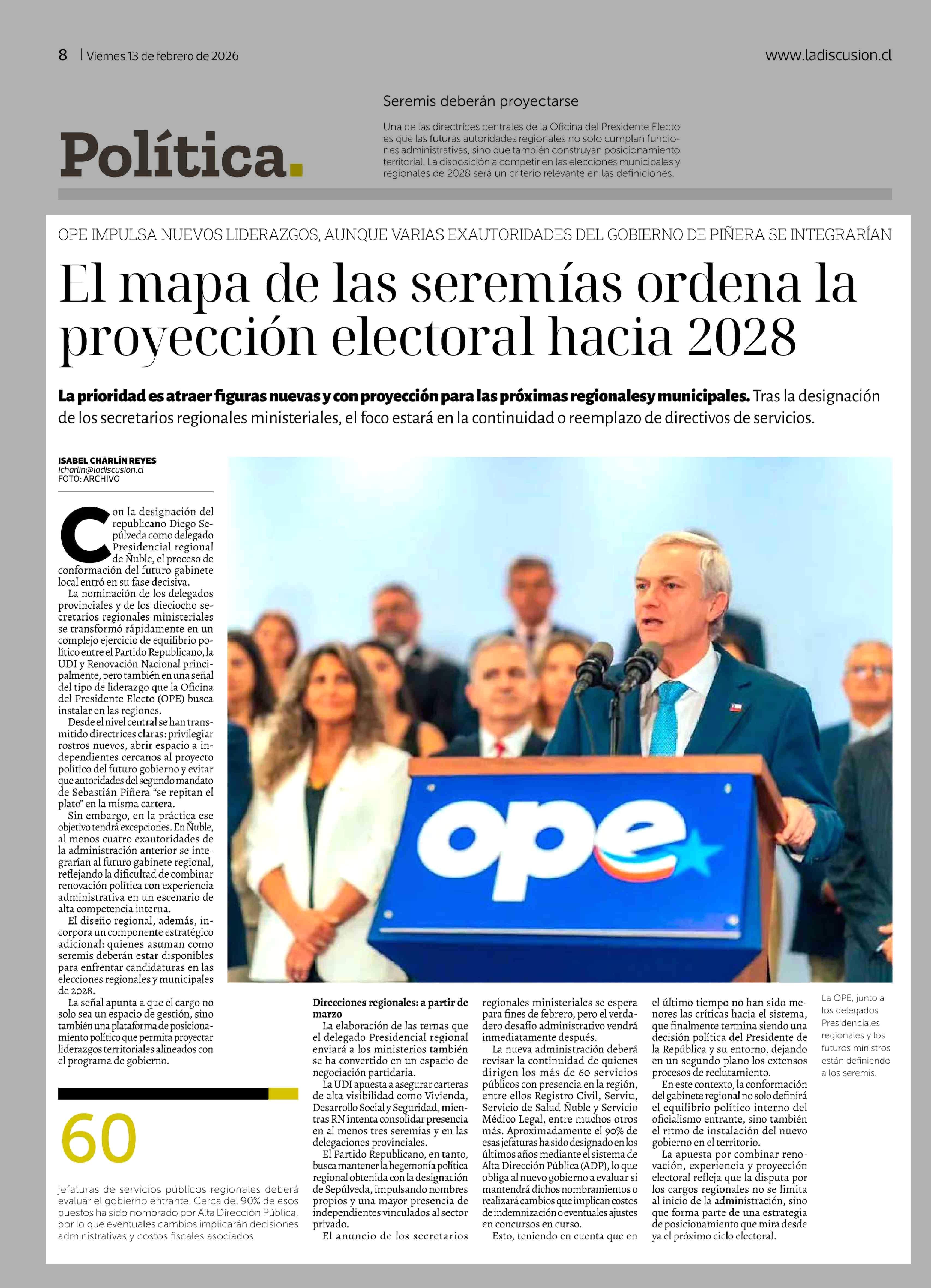 Título: El mapa de las seremías ordena la proyección electoral hacia 2028