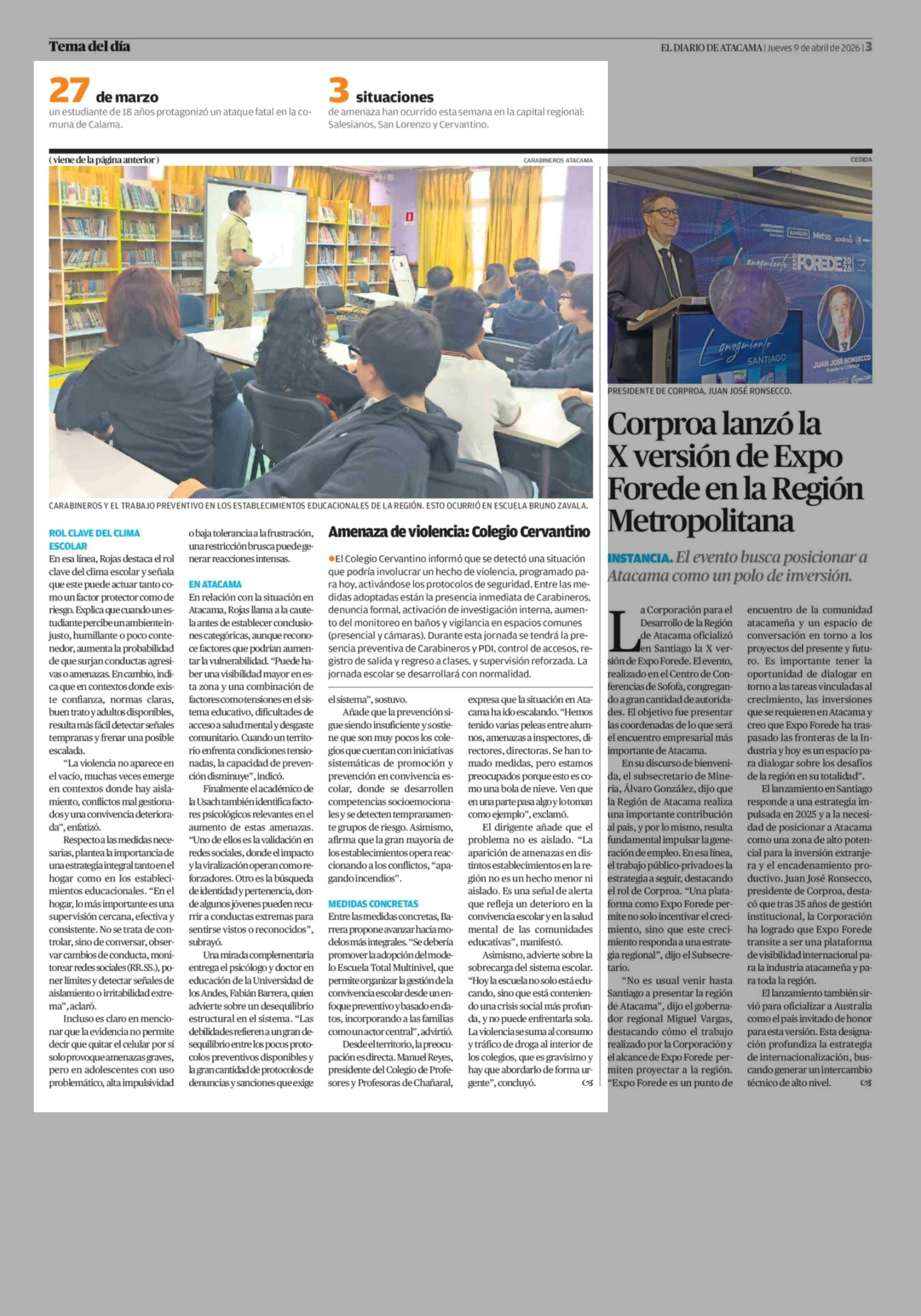 Fuente: El Diario de Atacama (El Diario de Atacama) Página(s): 2-3