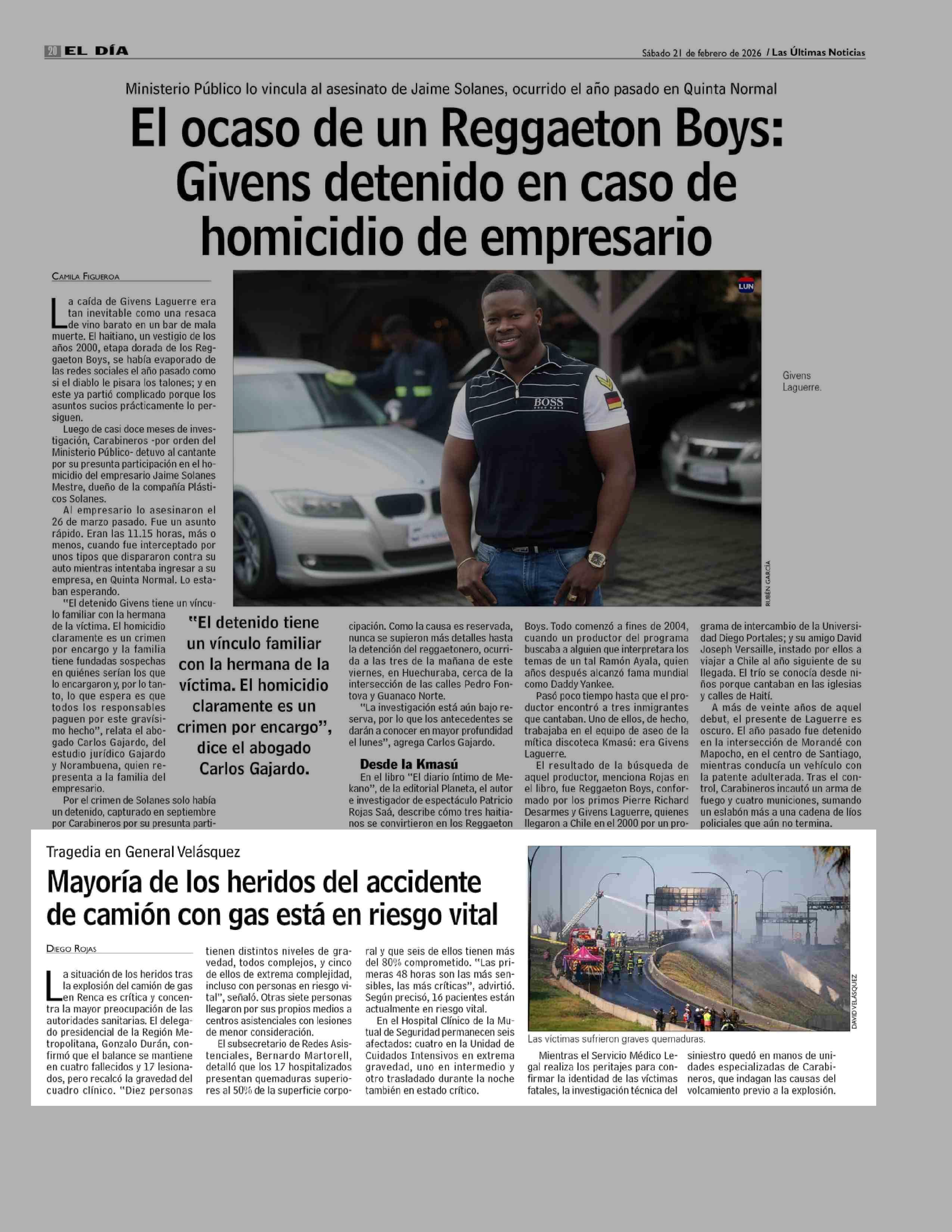 Mayoría de los heridos del accidente de camión con gas está en riesgo vital 21-02-2026 Las Últimas Noticias |