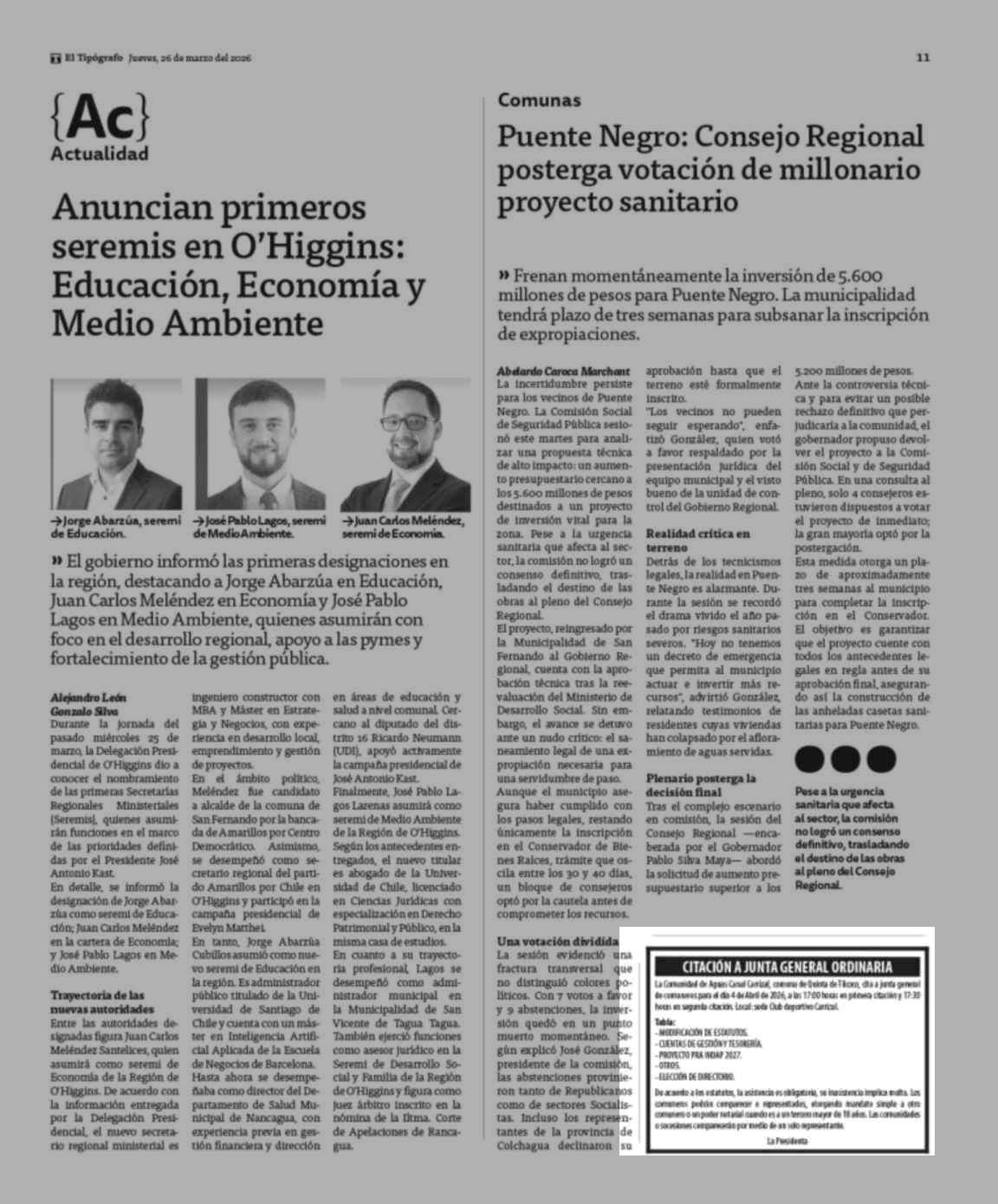 Fecha: 26-03-2026 Sector: Noticia general Región: Región del Libertador General Bernardo O'Higgins