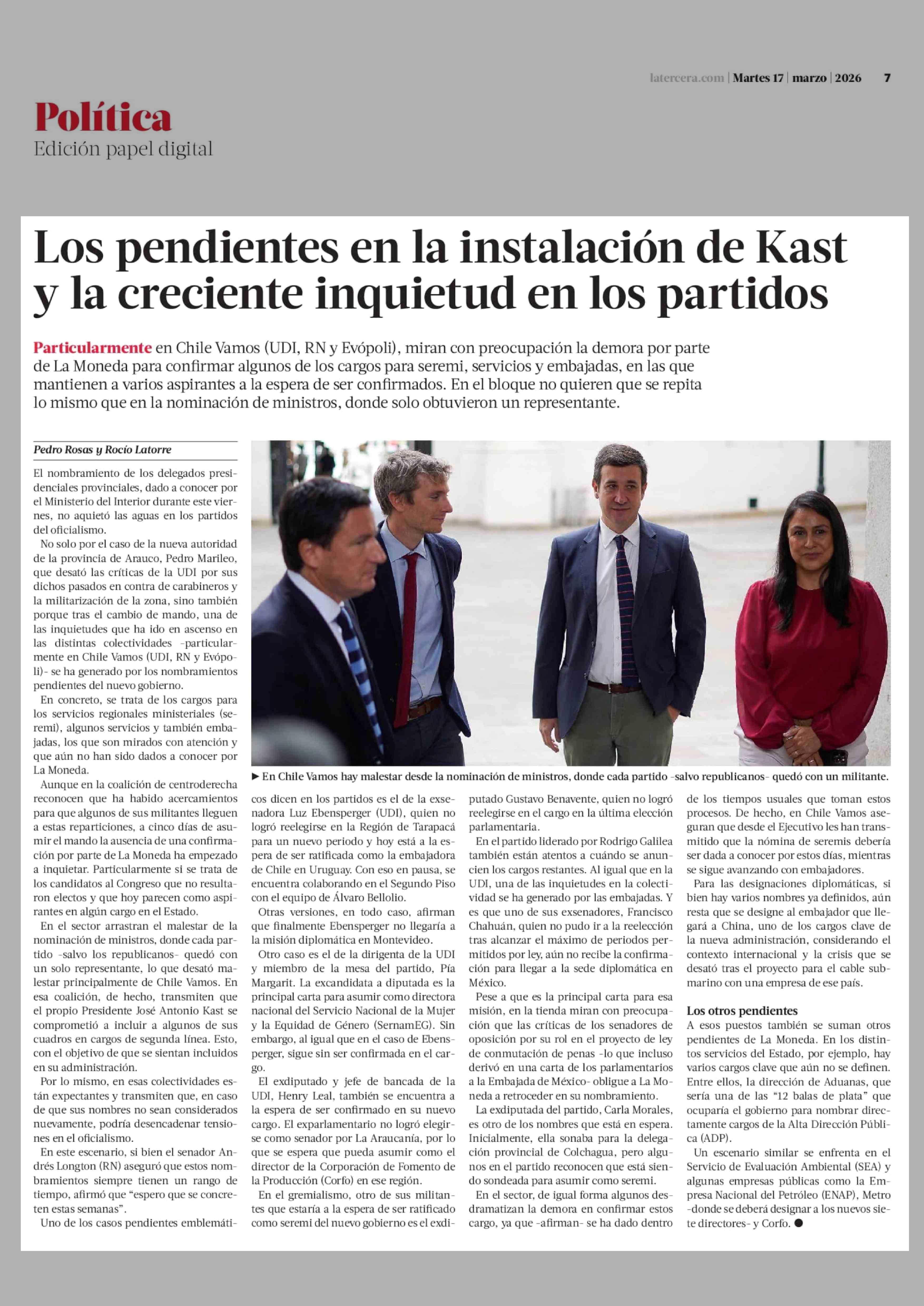 Fuente: La Tercera (La Tercera) Página(s): 7