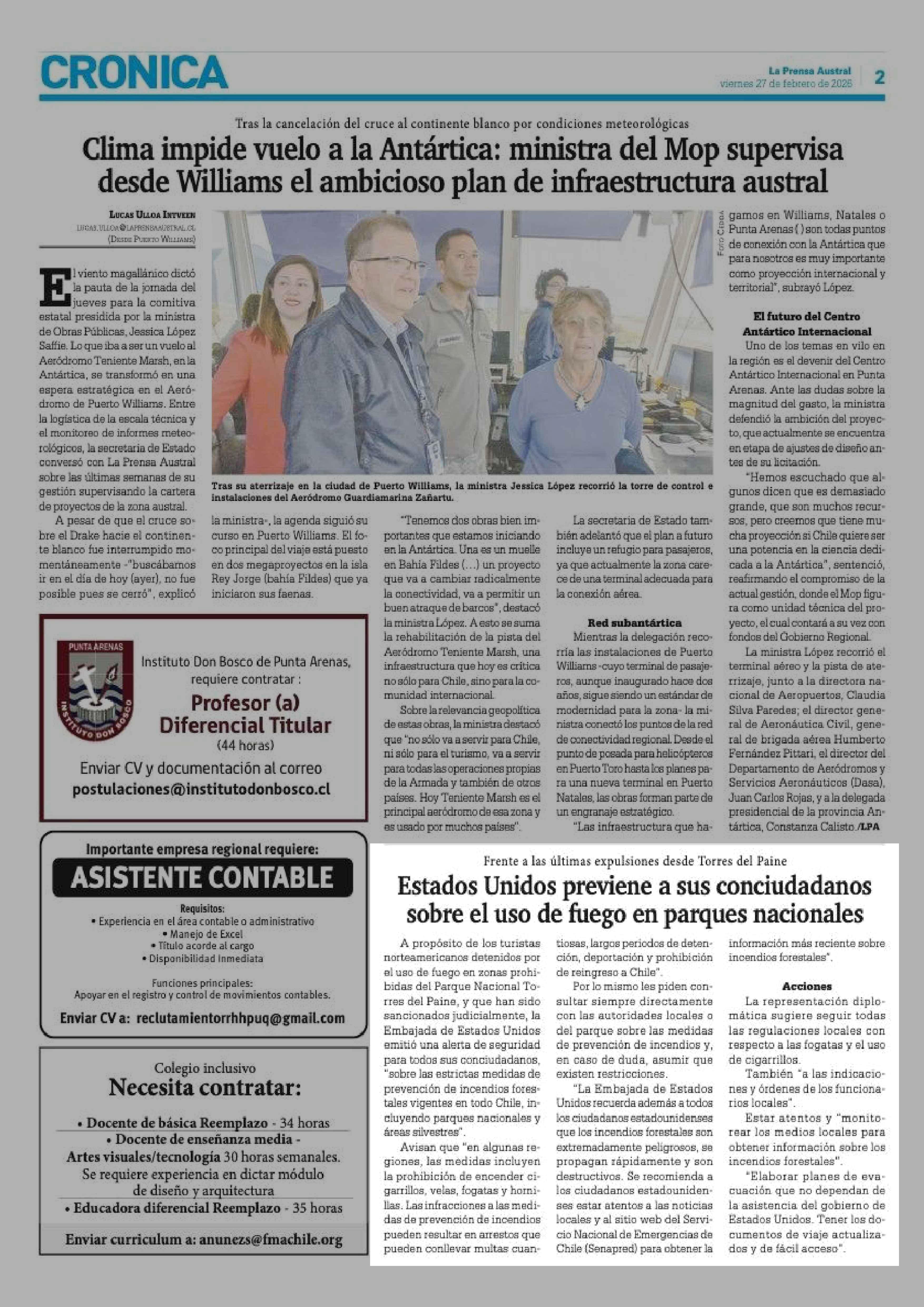 Fecha: 27-02-2026 Sector: Noticia general Región: Región de Magallanes y de la Antártica Chilena