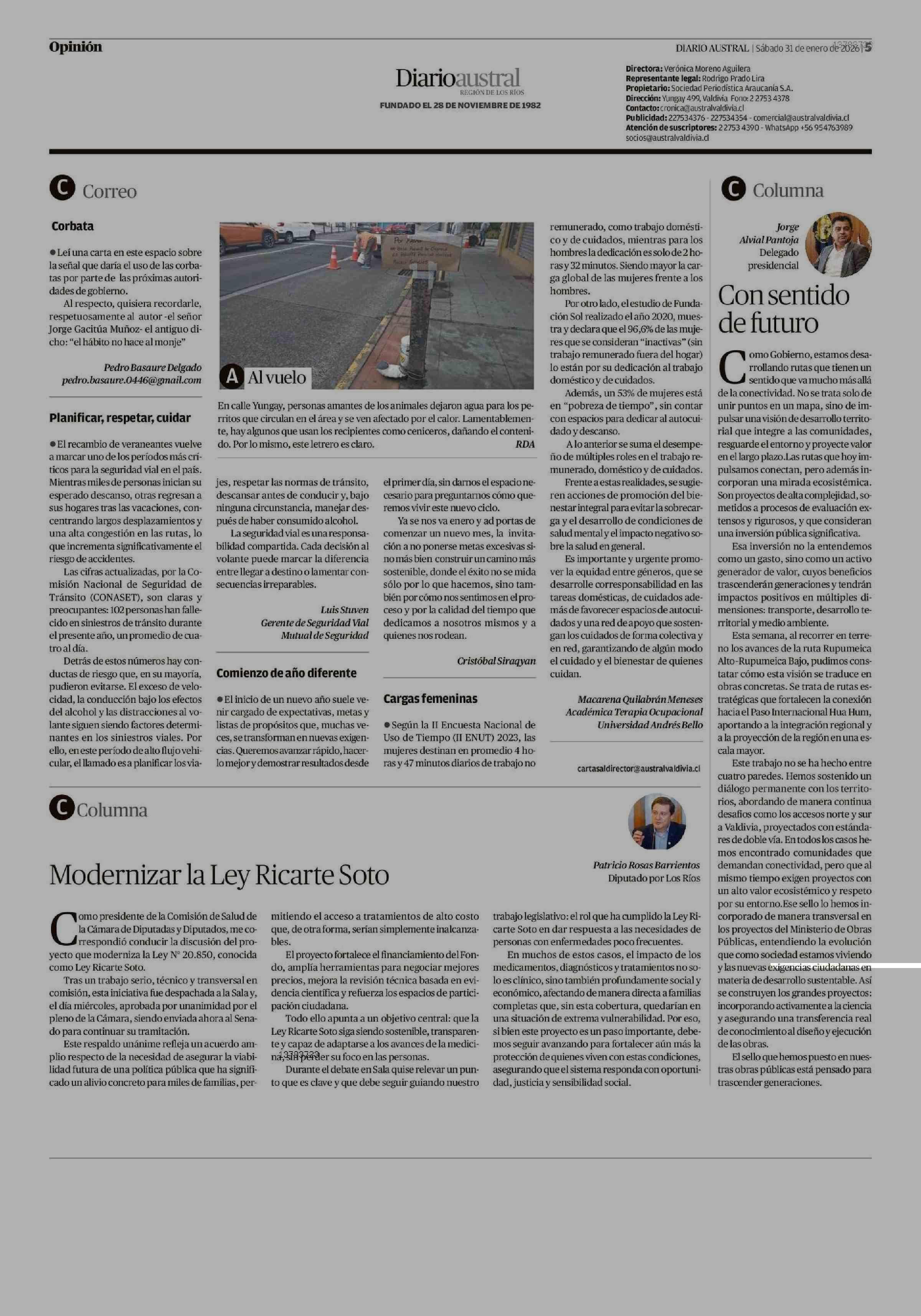 CARTAS: Cargas femeninas 31-01-2026 Diario Austral Región de Los Ríos |