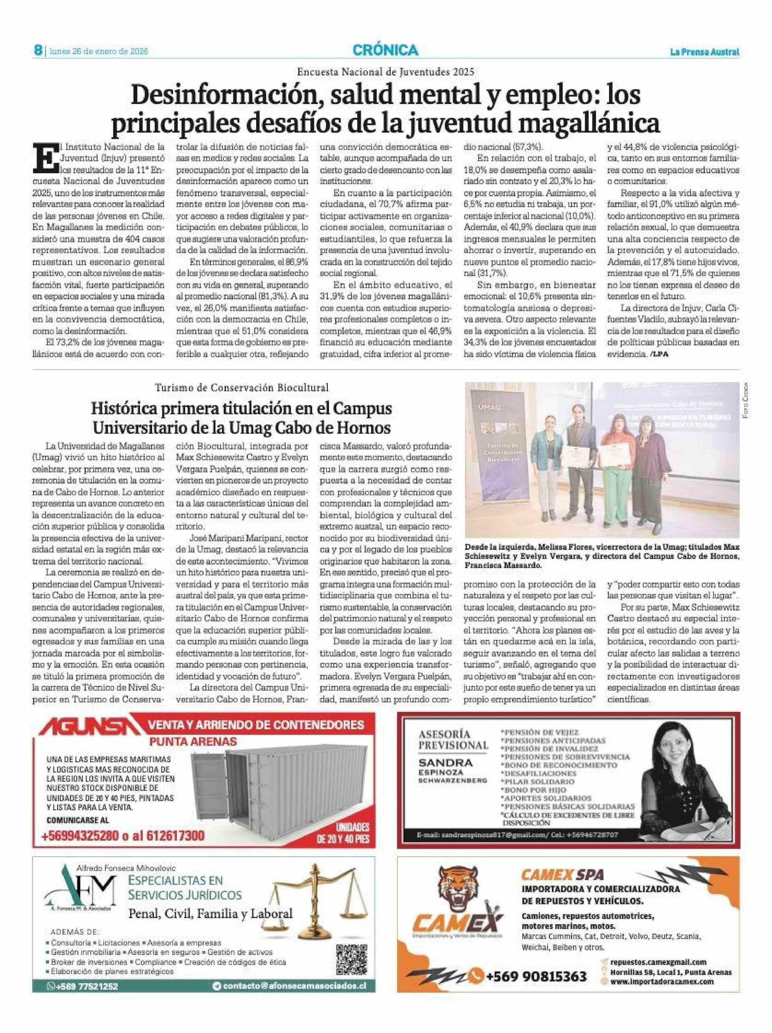Histórica primera titulación en el Campus Universitario de la Umag Cabo de Hornos 26-01-2026 La Prensa Austral |