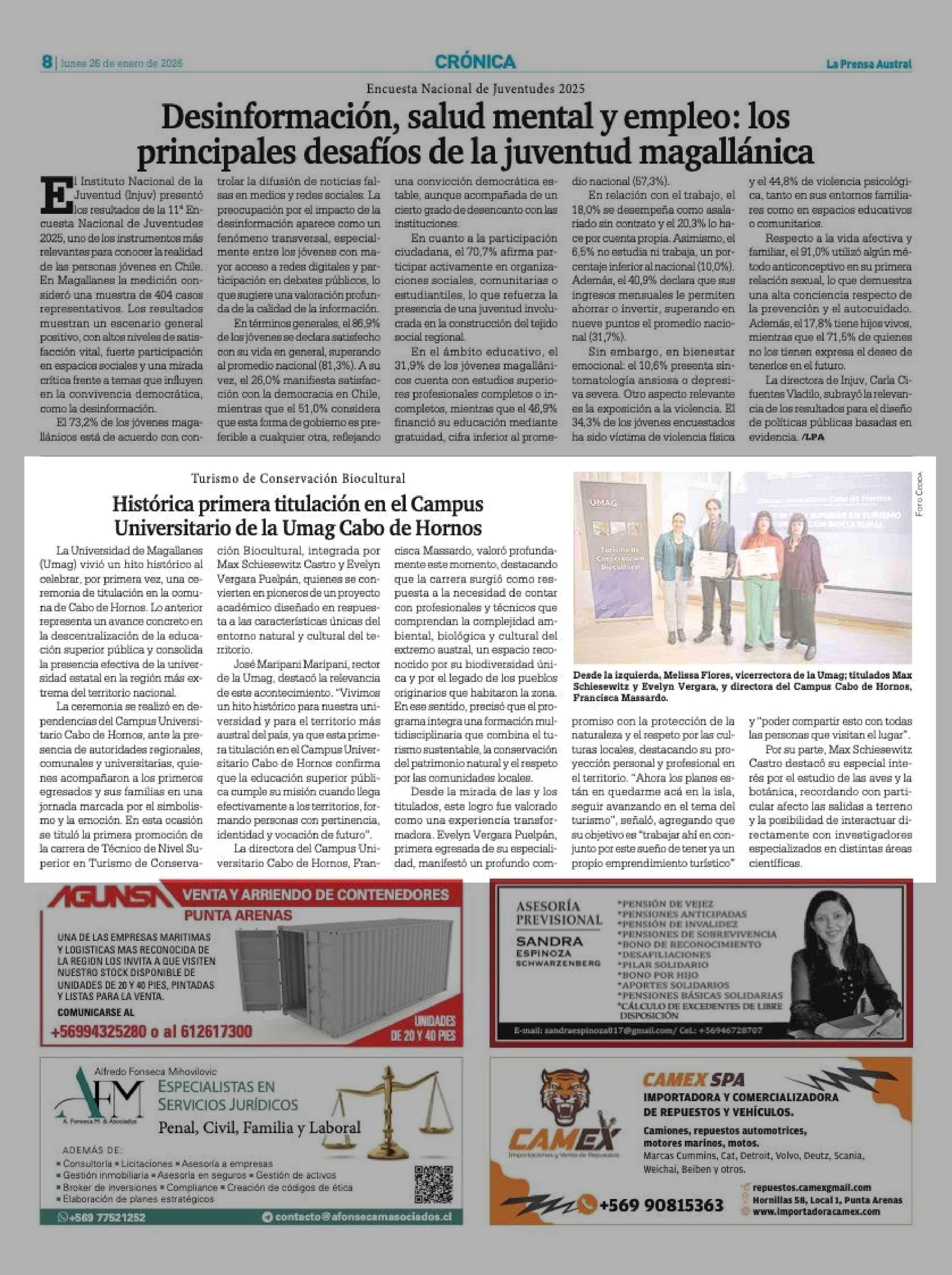 | Fecha: | 26-01-2026 | Sector: | Noticia general | Región: | Región de Magallanes y de la Antártica Chilena |