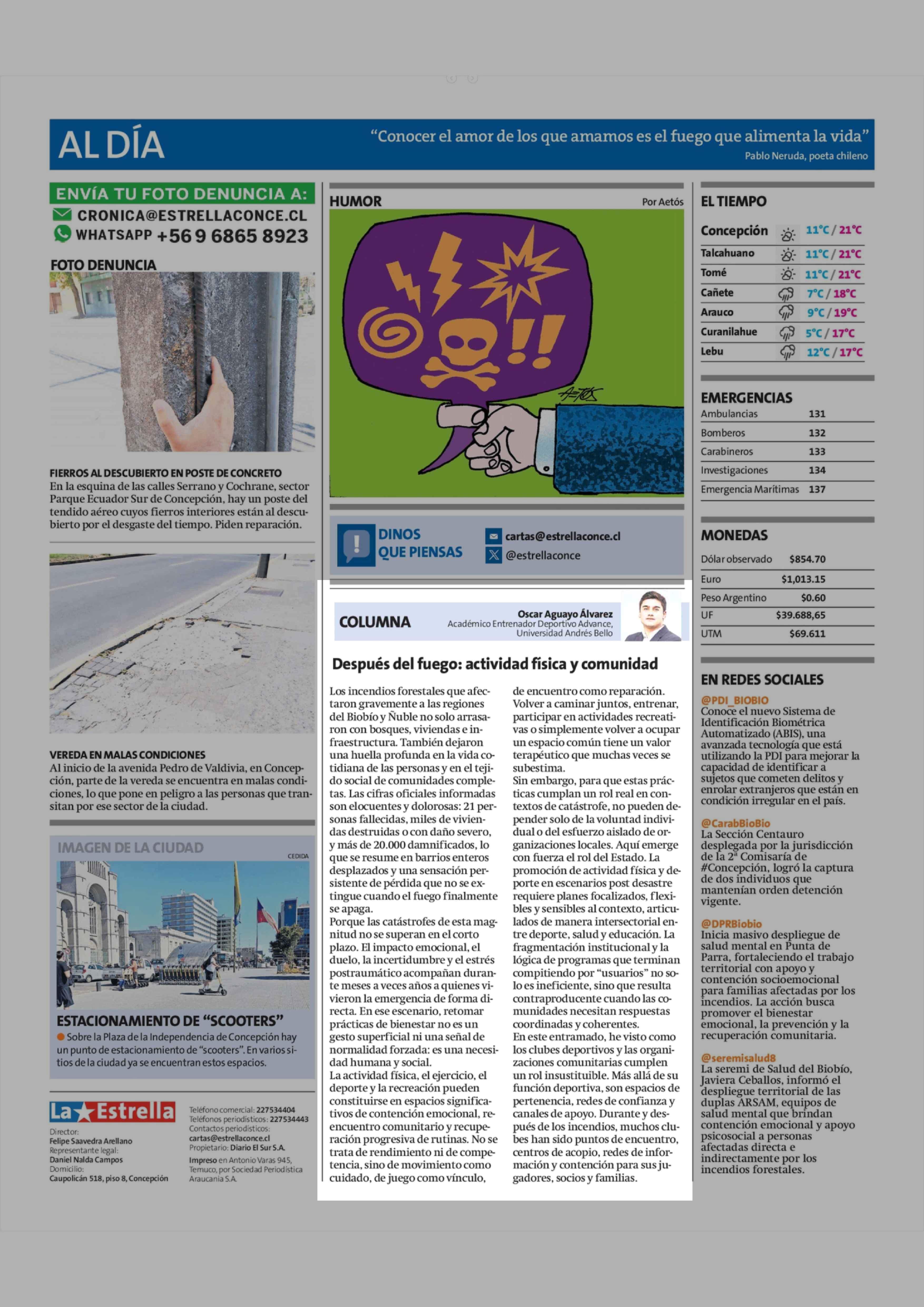 Título: Columnas de Opinión: Después del fuego: actividad física y comunidad