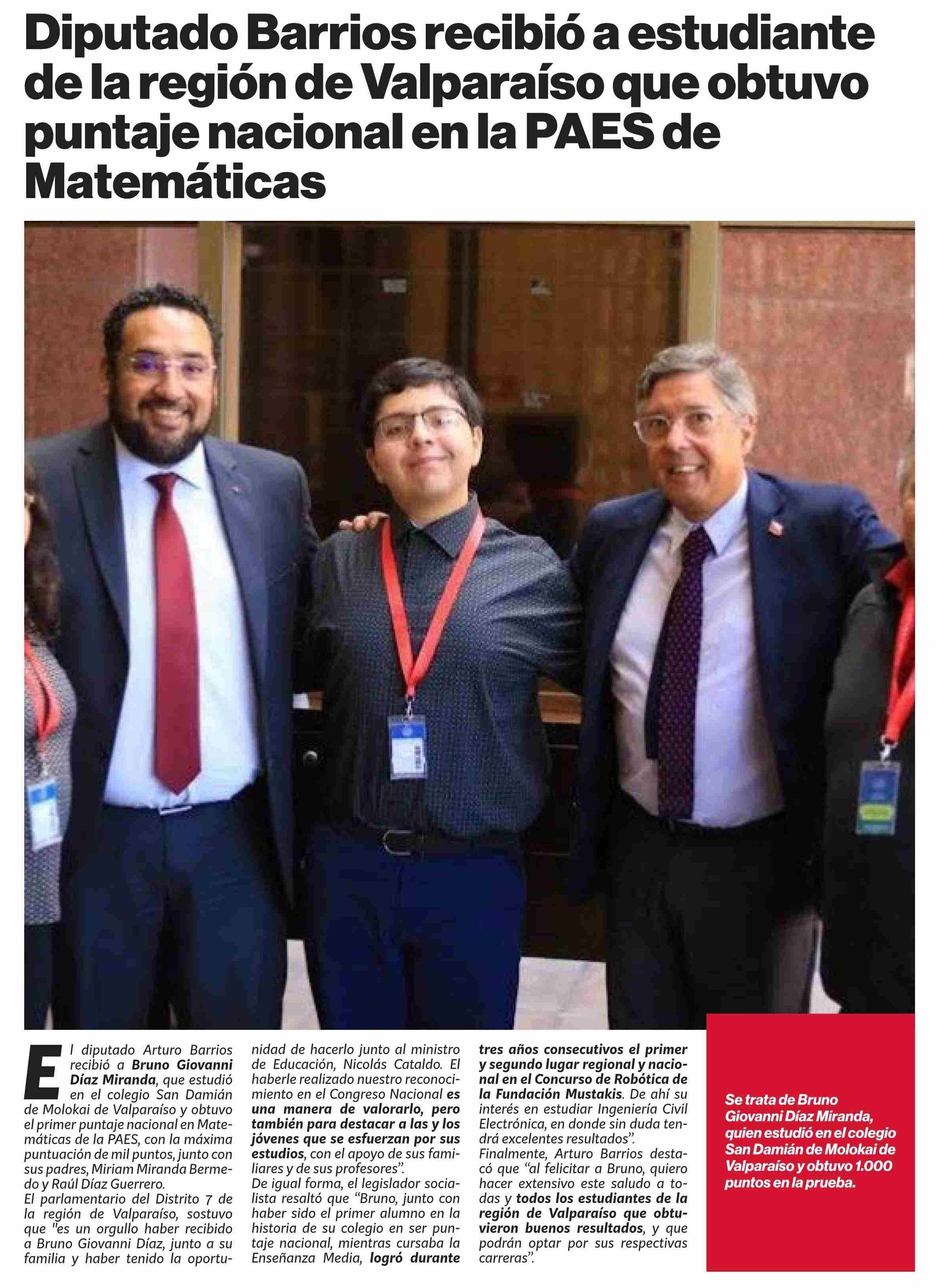 | Título: | Diputado Barrios recibió a estudiante de la región de Valparaíso que obtuvo puntaje nacional en la PAES de Matemáticas |