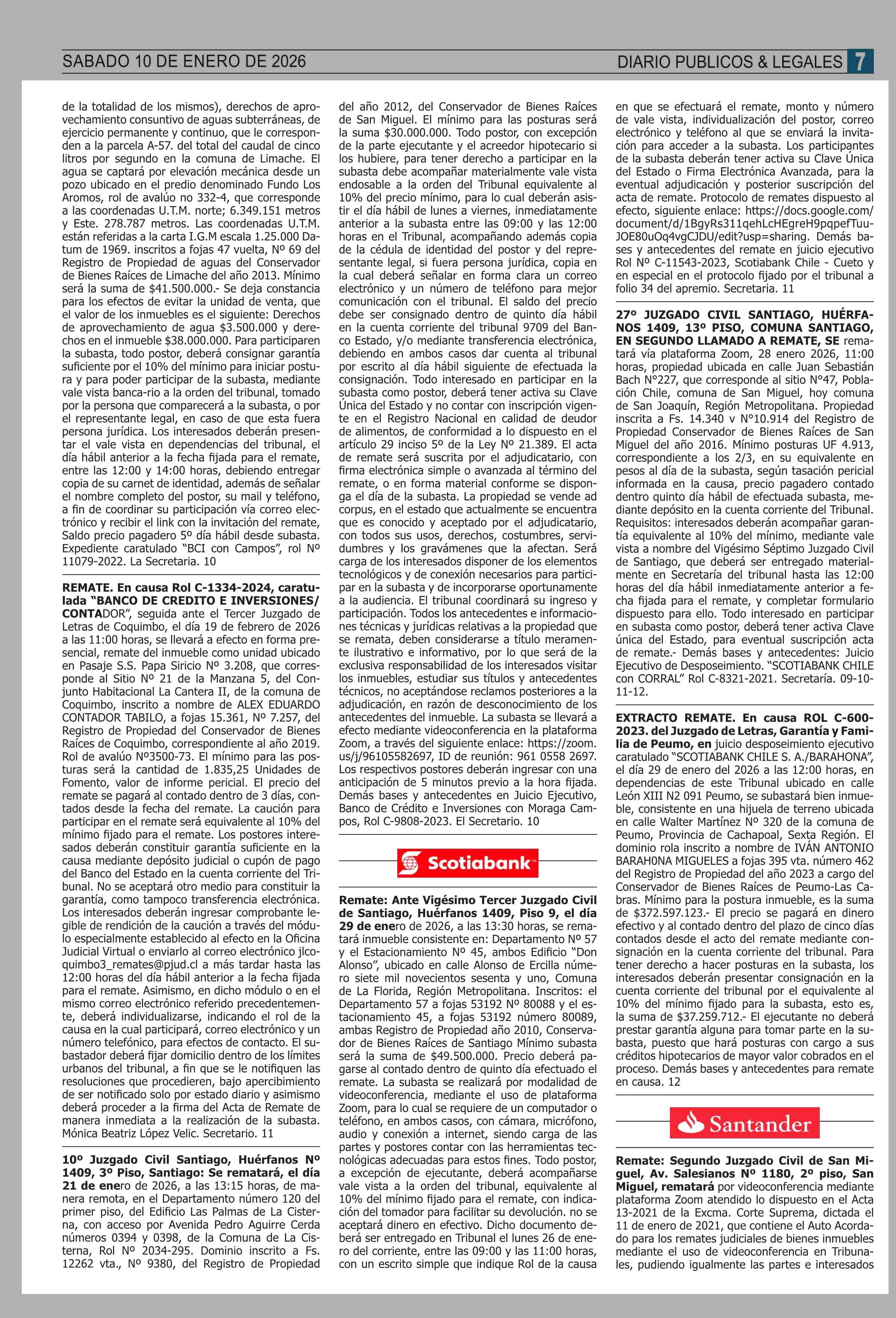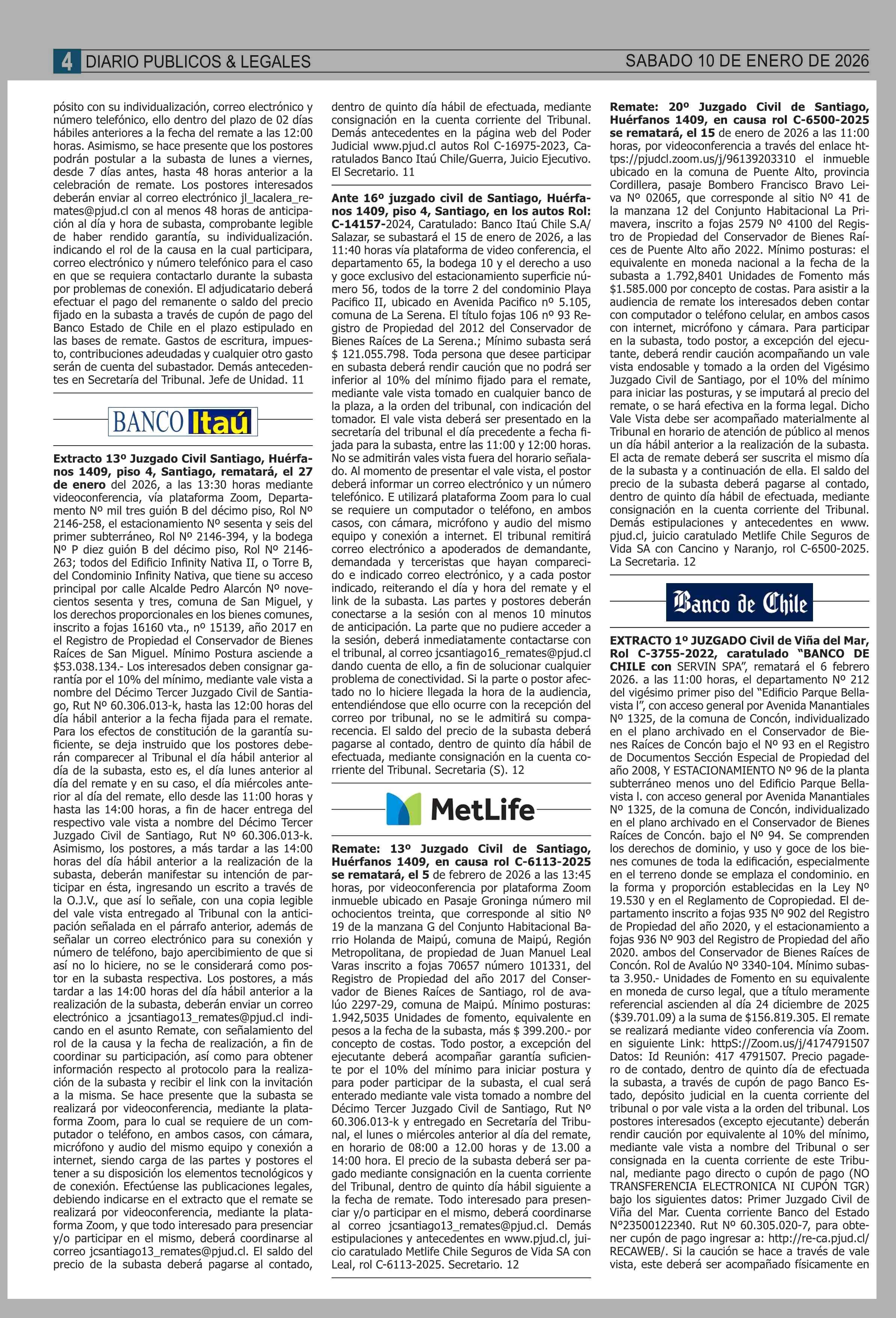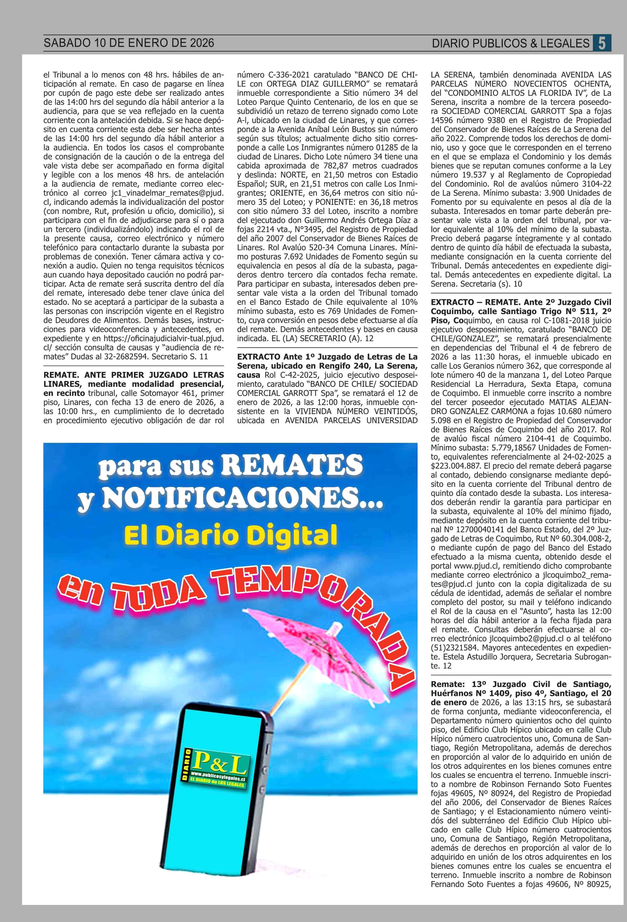 REMATES: COMPENDIO REMATES Ile PROPIEDADES (NACIONAL 10-01-2026 P&L Públicos y Legales |