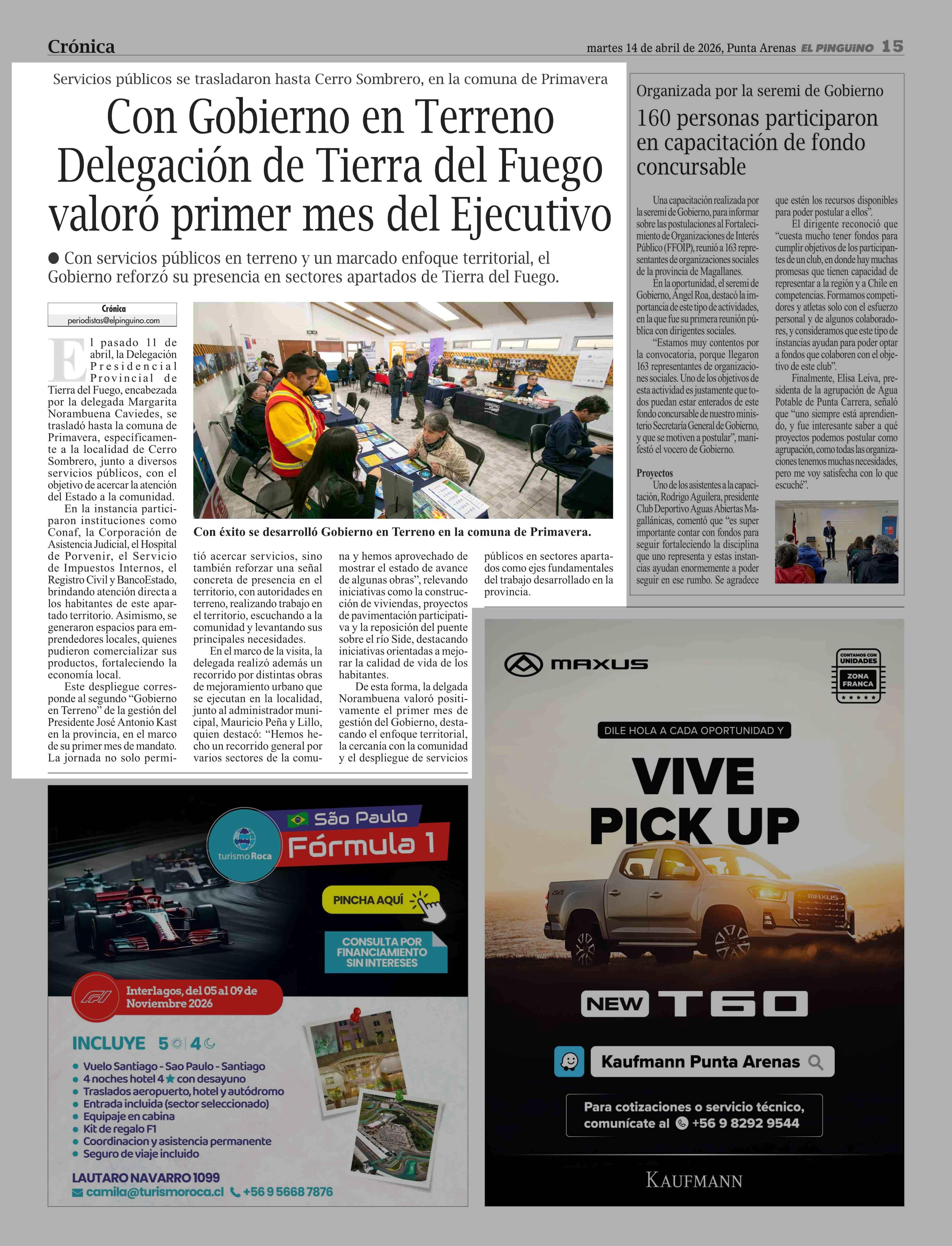 Fecha: 14-04-2026 Sector: Noticia general Región: Región de Magallanes y de la Antártica Chilena
