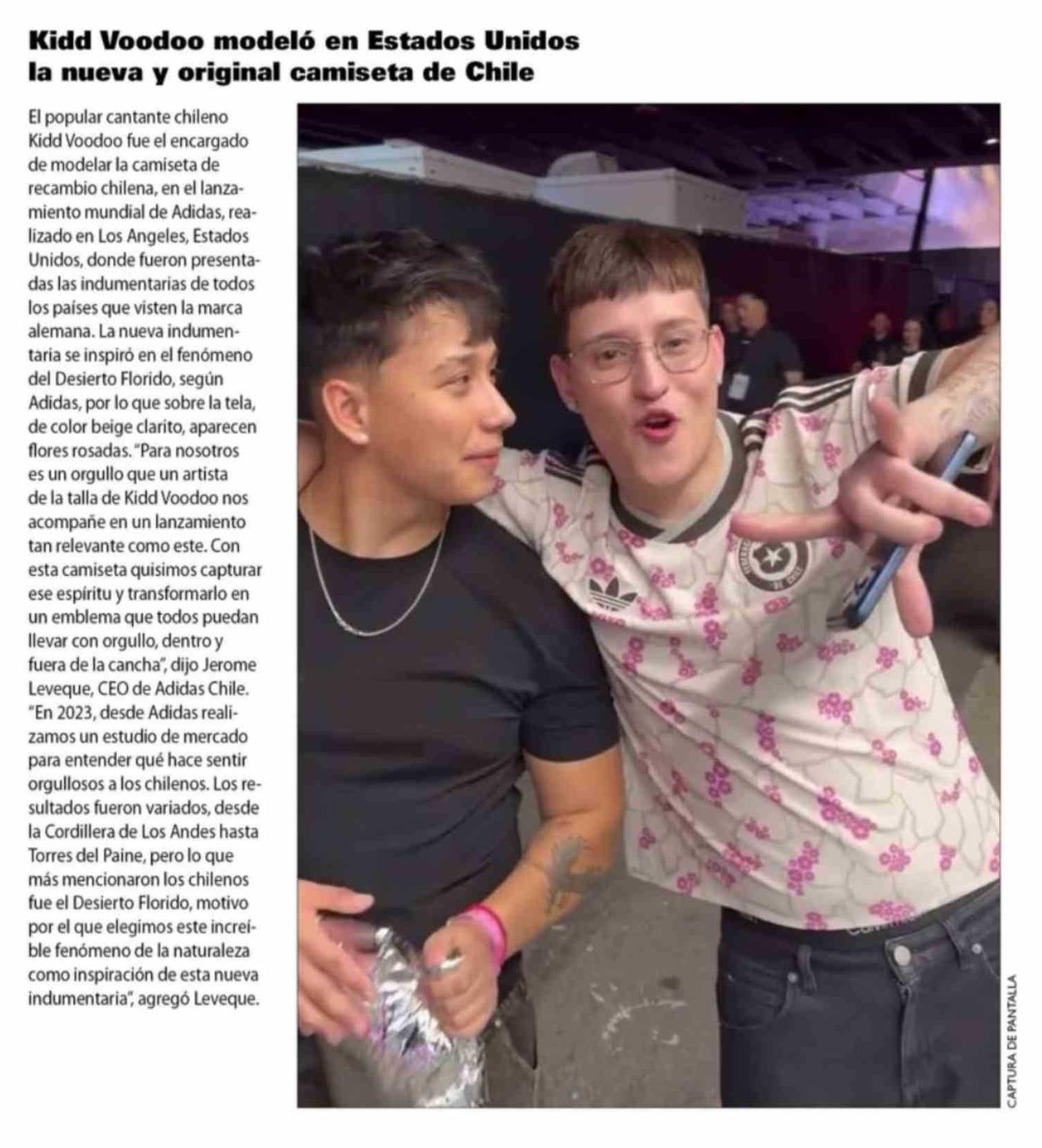 Kidd Voodoo modelo en Estados Unidos la nueva y original camiseta de Chile 21-03-2026 Las Últimas Noticias |