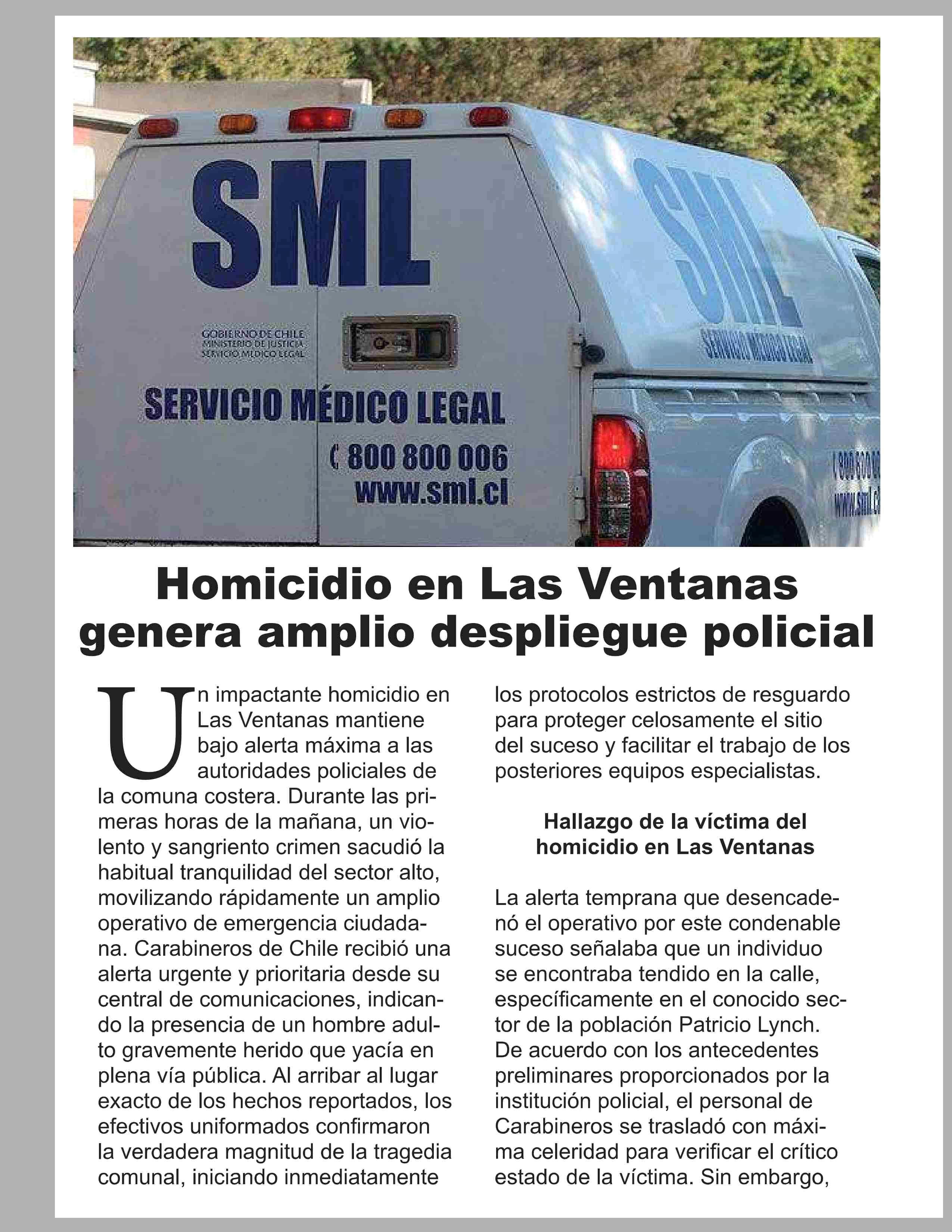 | Título: | Homicidio en Las Ventanas genera amplio despliegue policial |