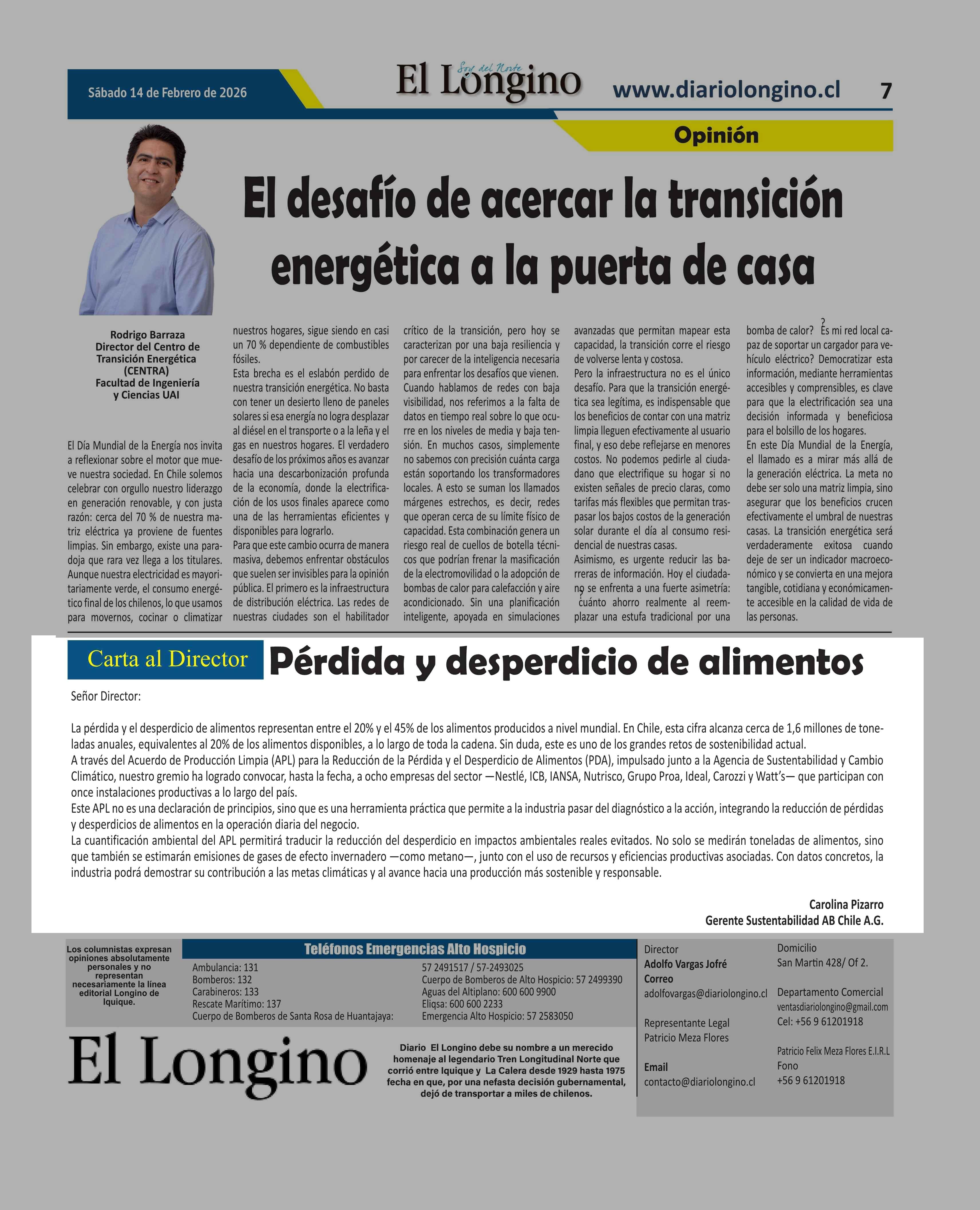 CARTAS: Pérdida y desperdicio de alimentos 14-02-2026 El Longino |