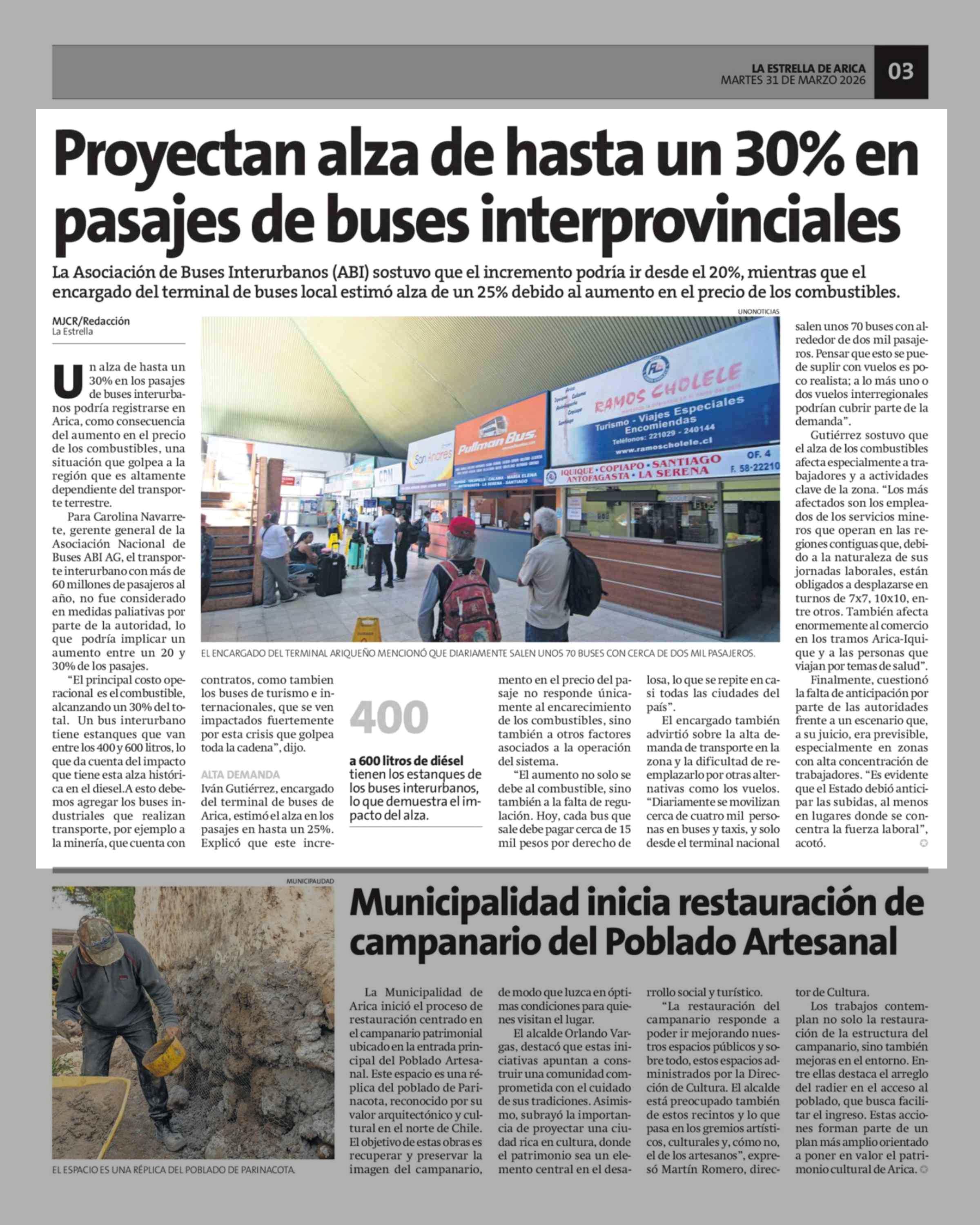 Fecha: 31-03-2026 Sector: Noticia general Región: Región de Arica y Parinacota