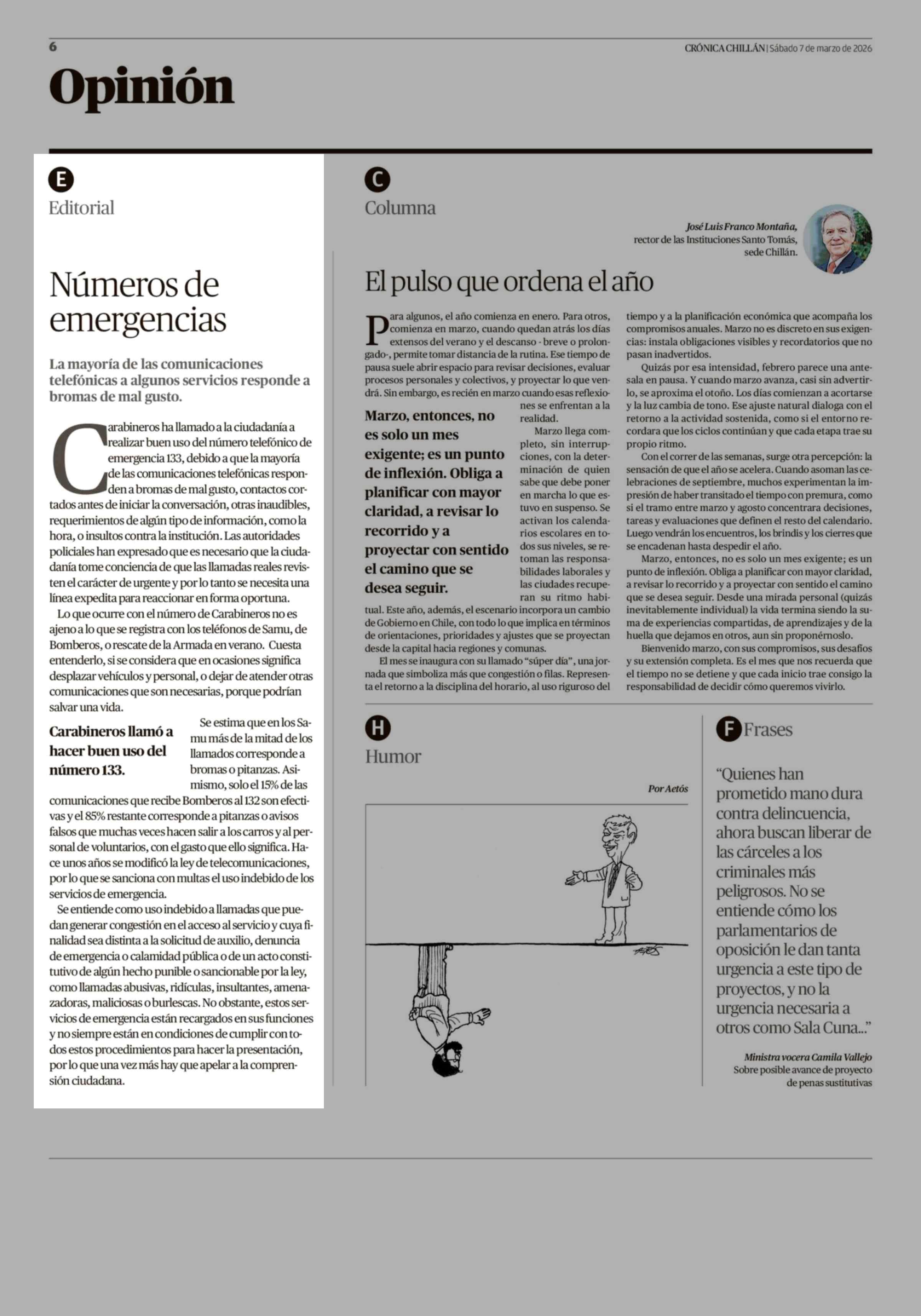 Fecha: 07-03-2026 Sector: Editorial Región: Región del Ñuble