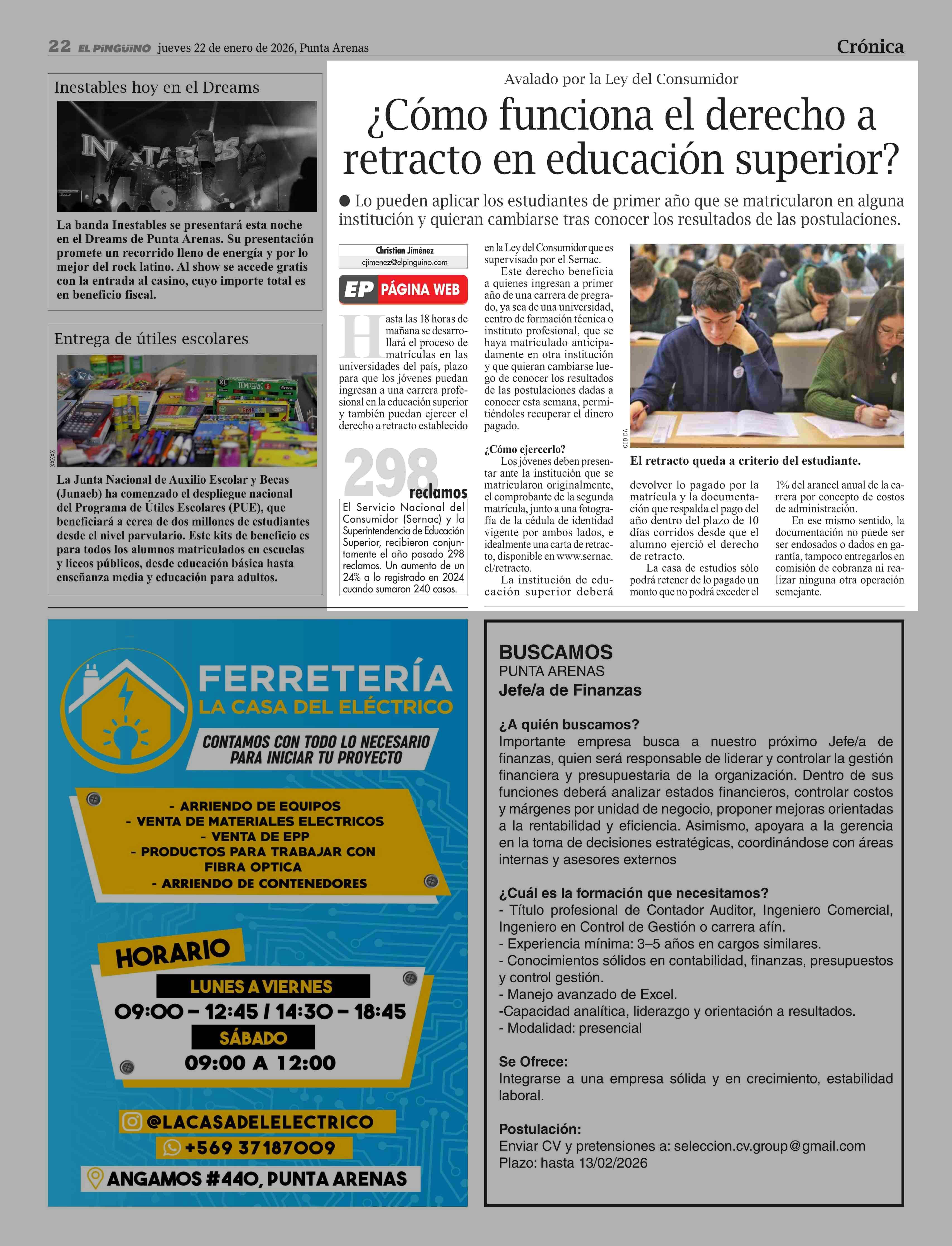 Fecha: 22-01-2026 Sector: Noticia general Región: Región de Magallanes y de la Antártica Chilena