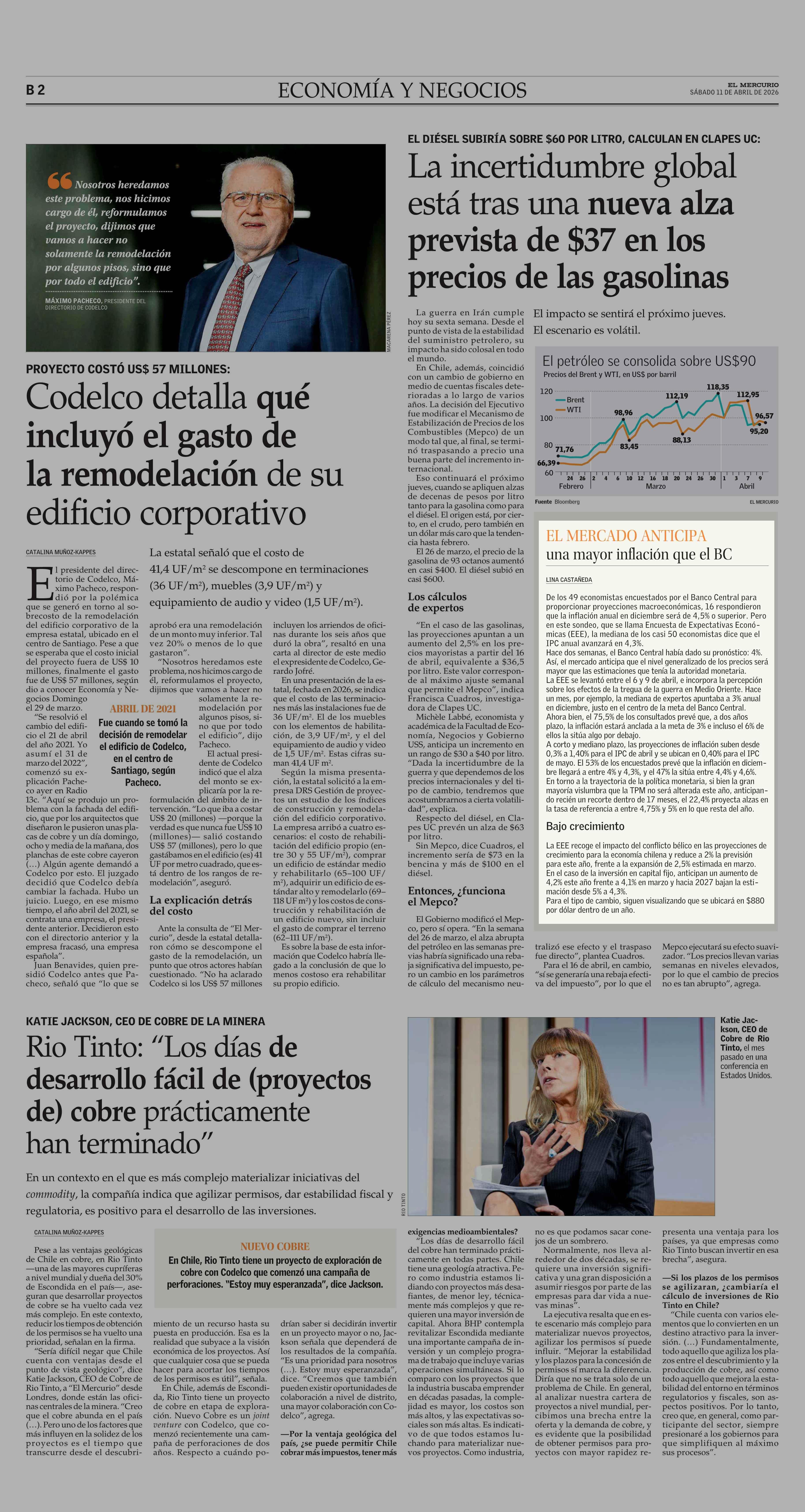 EL MERCADO ANTICIPA una mayor inflación que el BC 11-04-2026 El Mercurio |