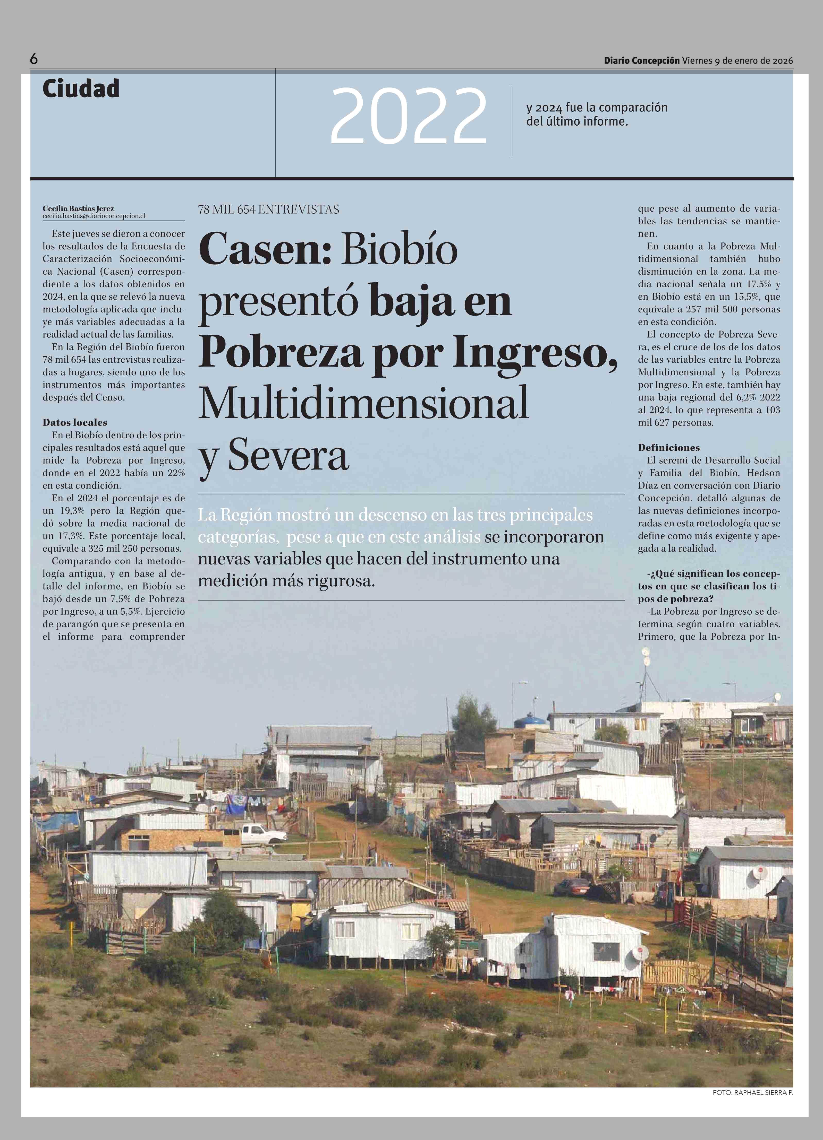 Casen: Biobío presentó baja en Pobreza por Ingreso, Multidimensional y Severa 09-01-2026 Diario Concepción |