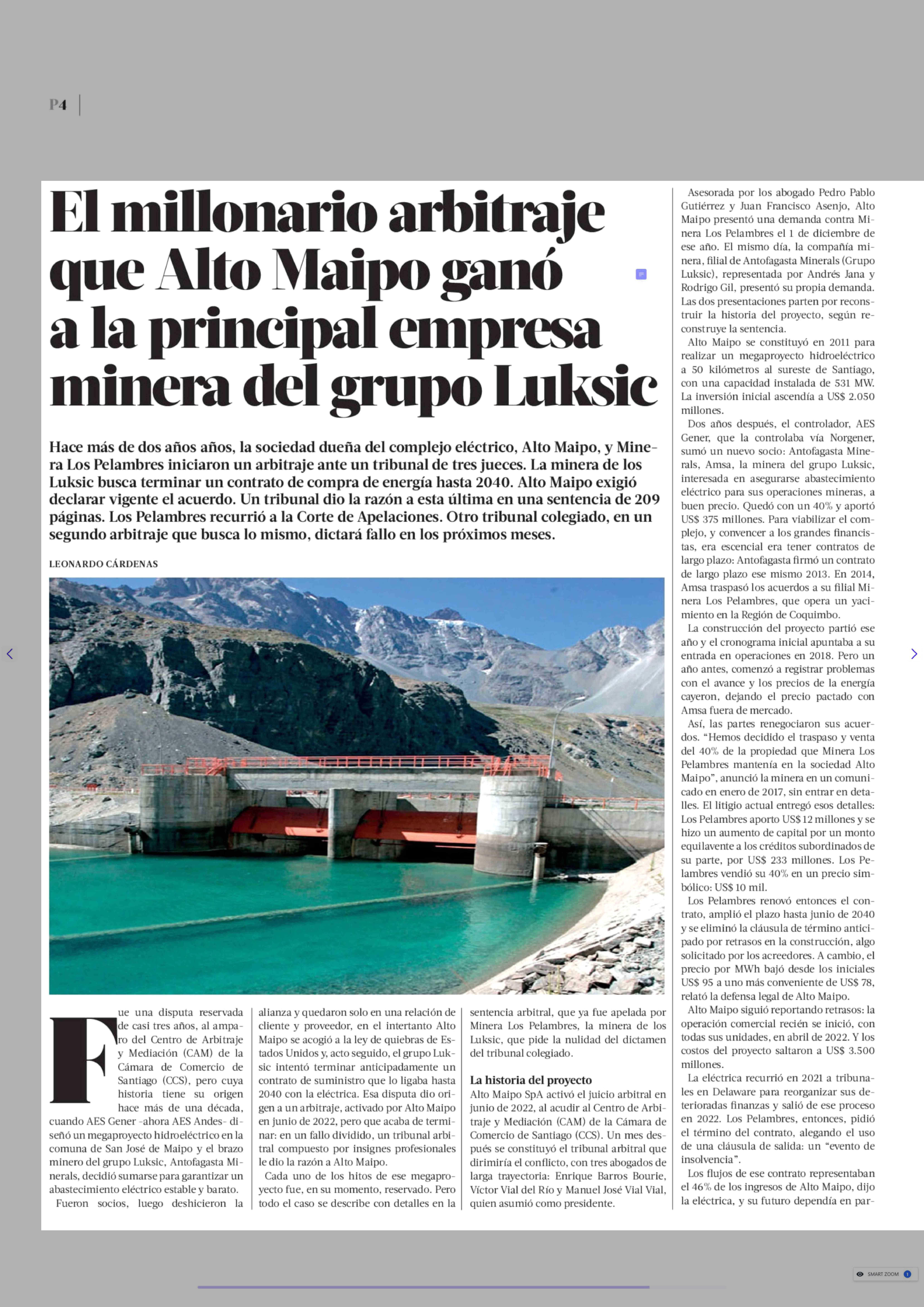 Título: El millonario arbitraje que Alto Maipo ganó a la principal empresa minera del grupo Luksic