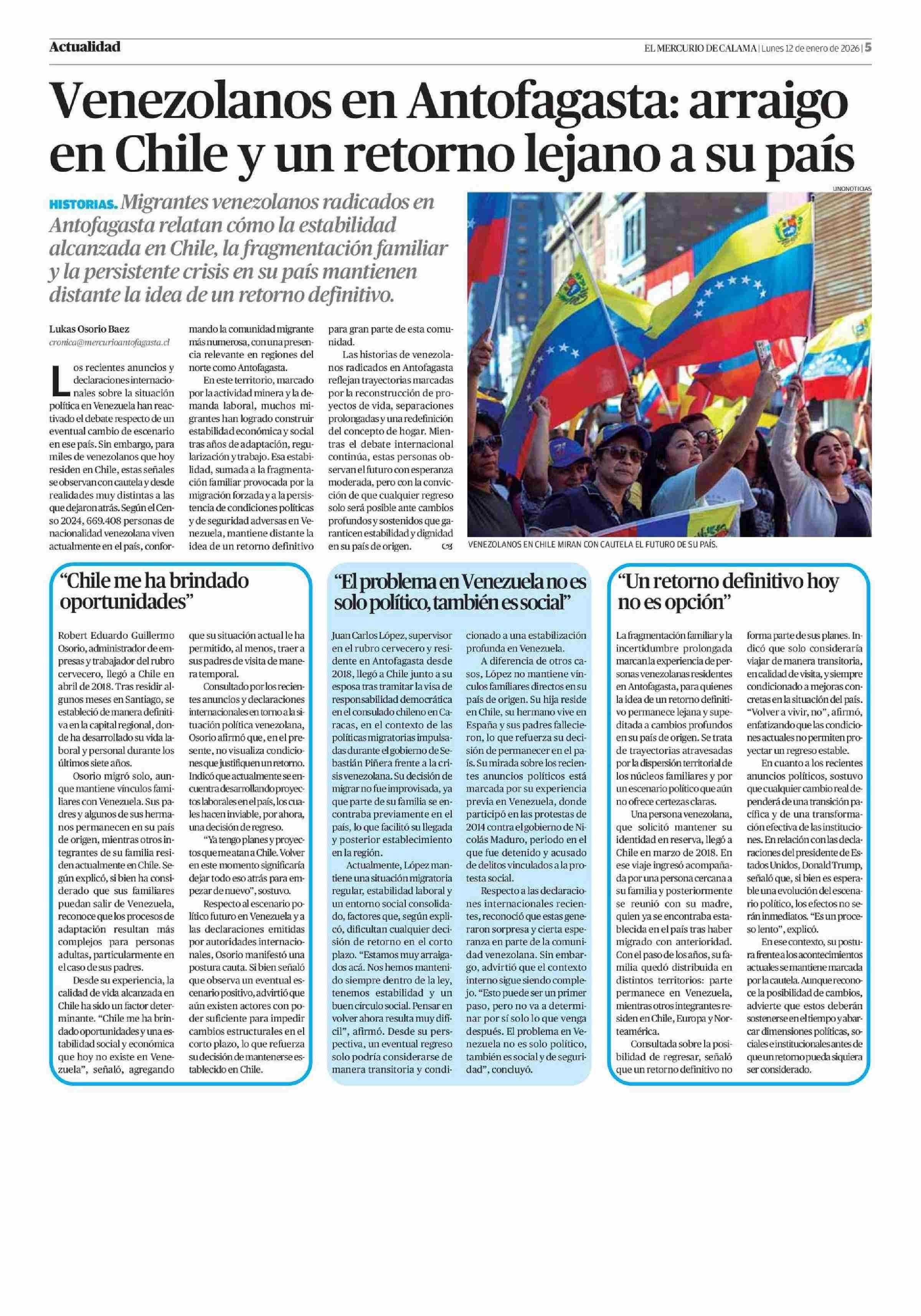 Título: Venezolanos en Antofagasta: arraigo en Chile y un retorno lejano a su país