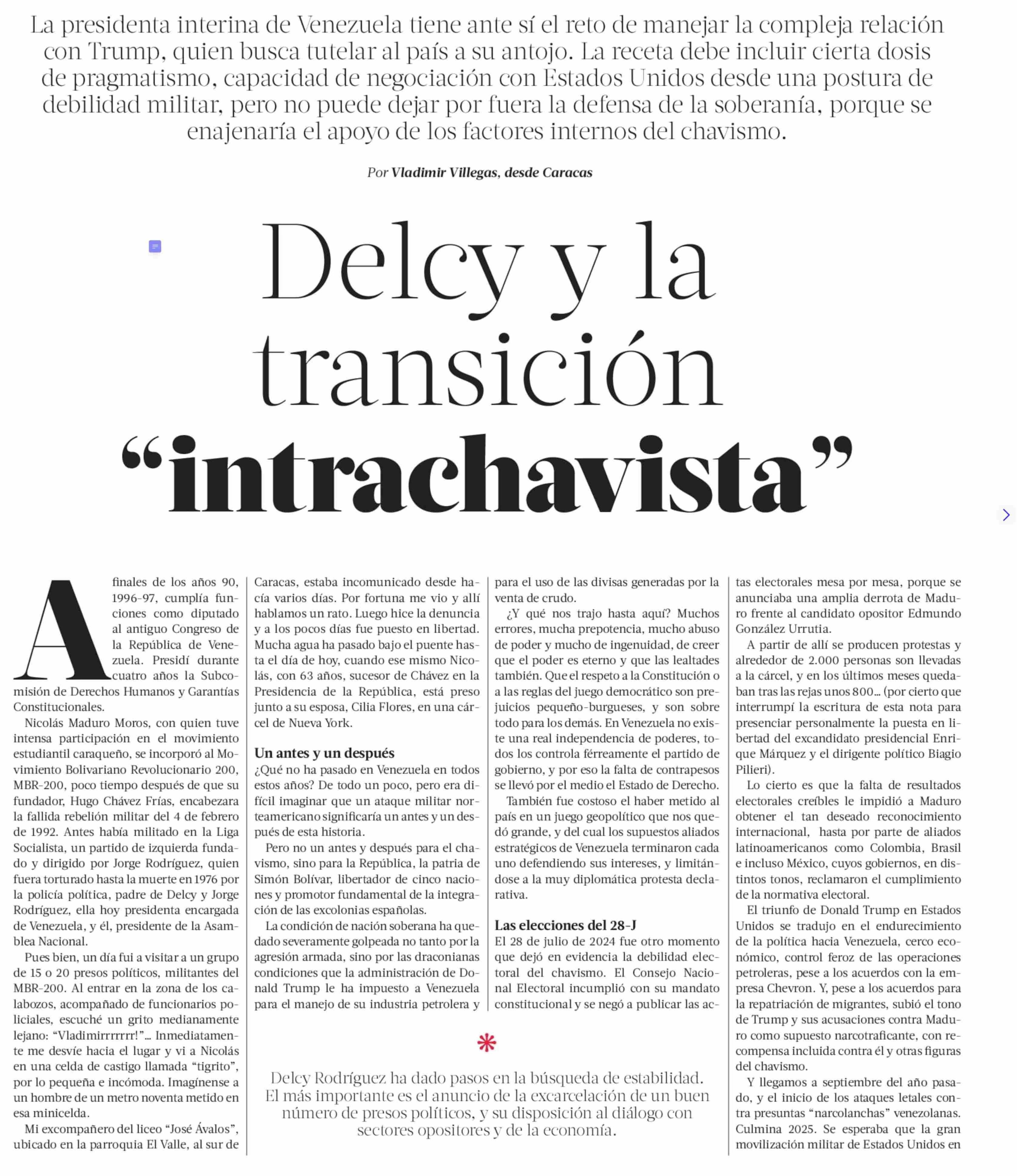 Título: Delcy y la transición "intrachavista"