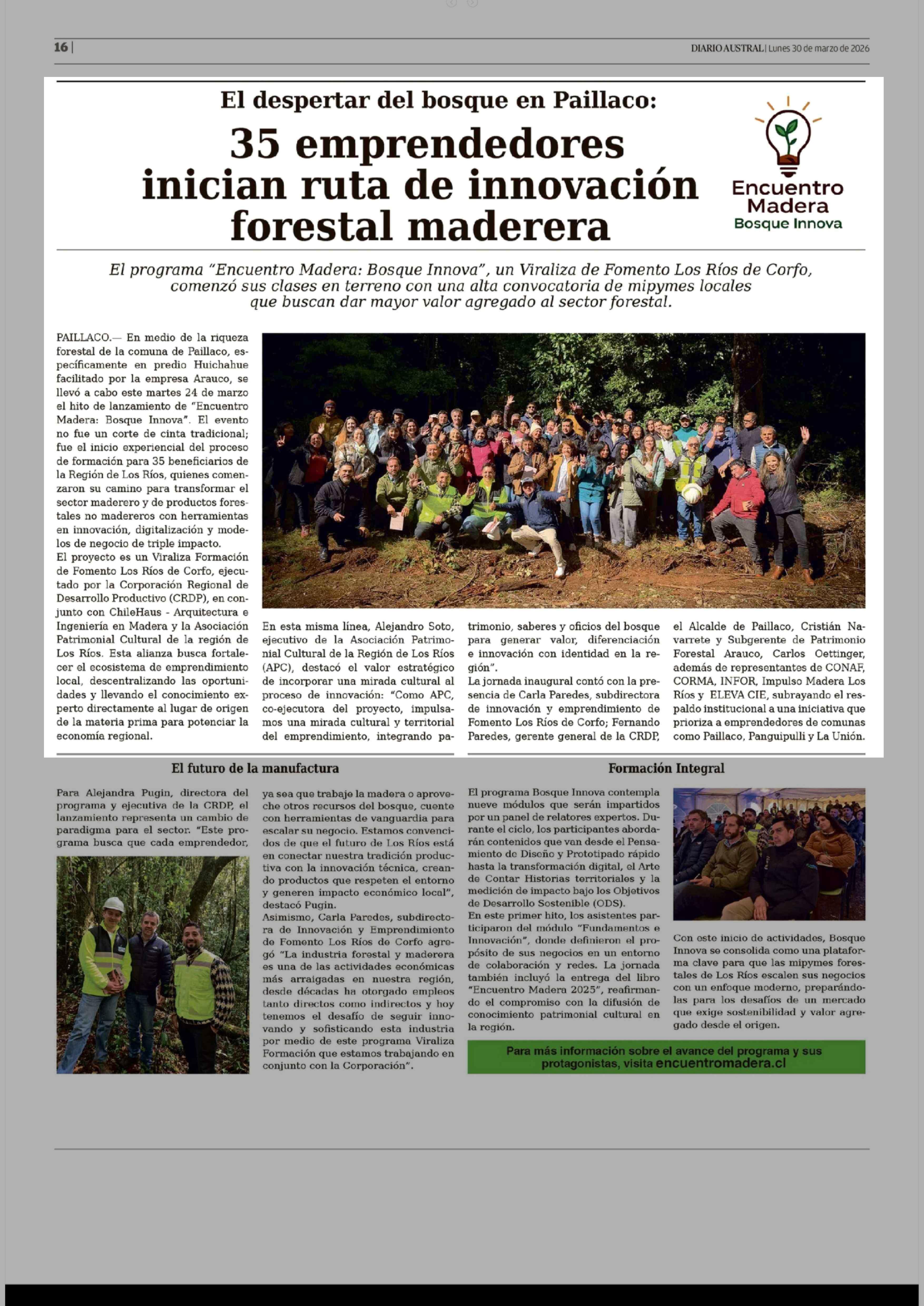 Título: 35 Emprendedores inician ruta de innovación forestal maderera