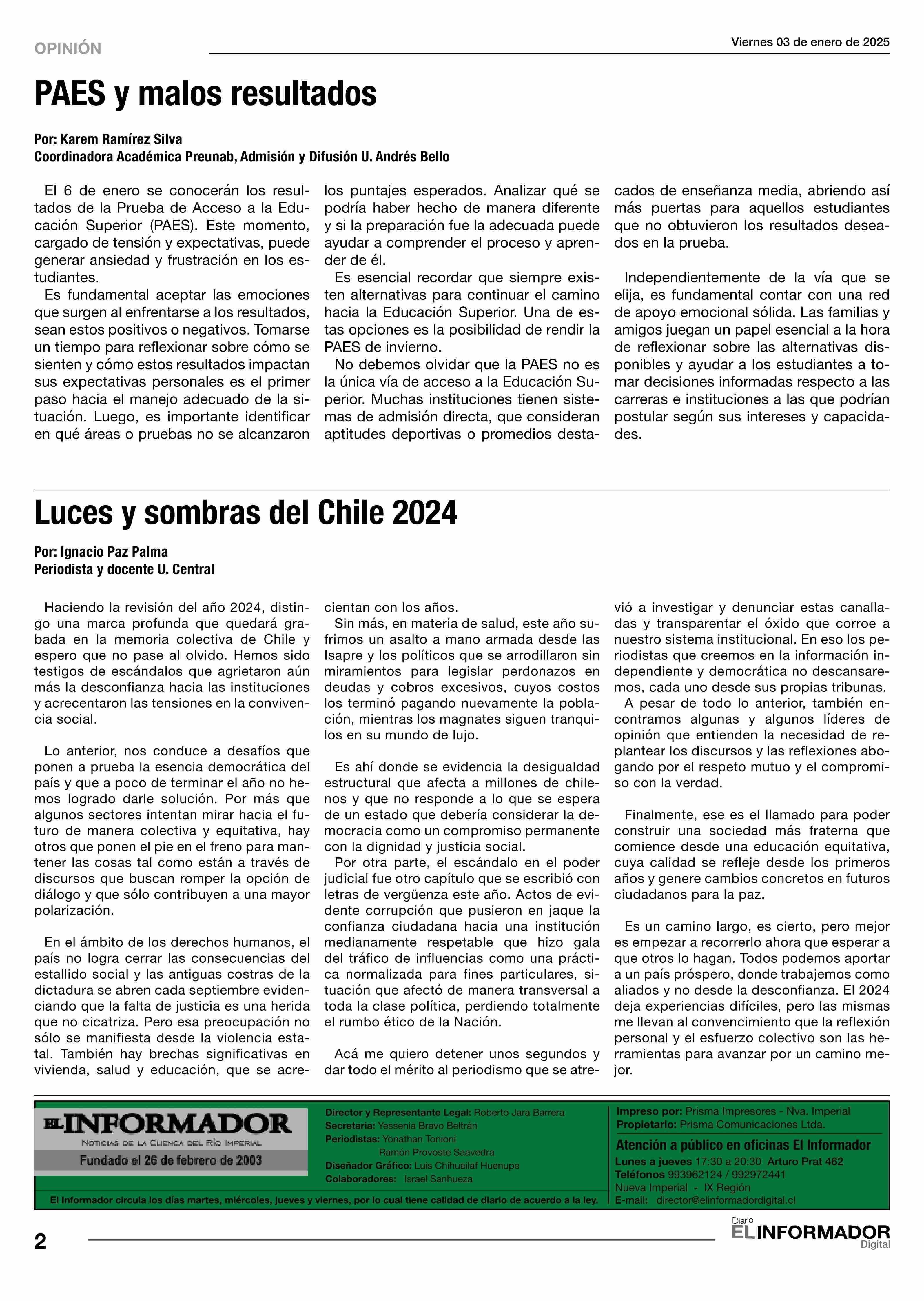 COLUMNAS DE OPINIÓN: PAES y malos resultados 03-01-2025 El Informador |