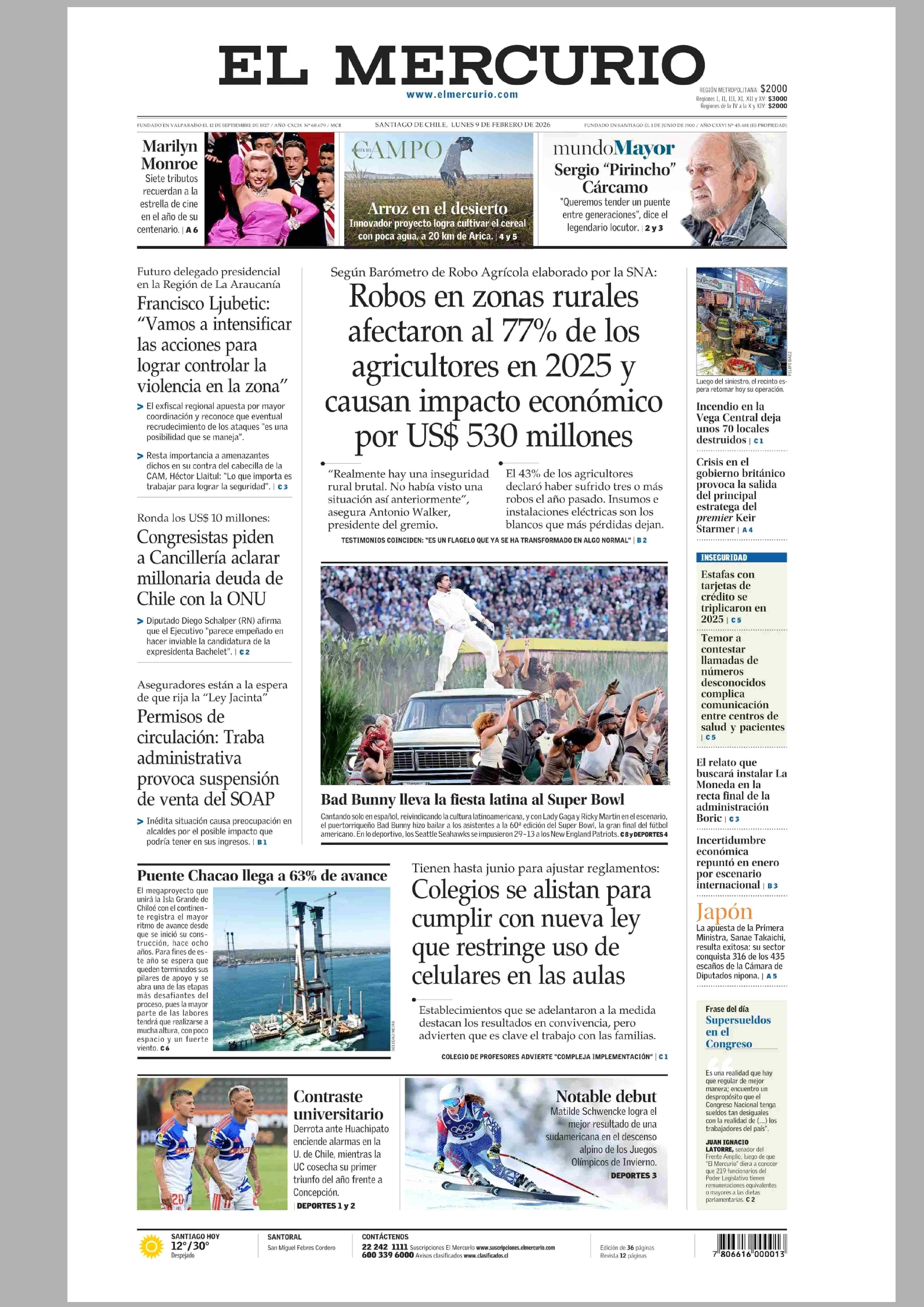 PORTADA EL MERCURIO (A SEGUNDA EDICIÓN) - CHILE 09-02-2026 El Mercurio |