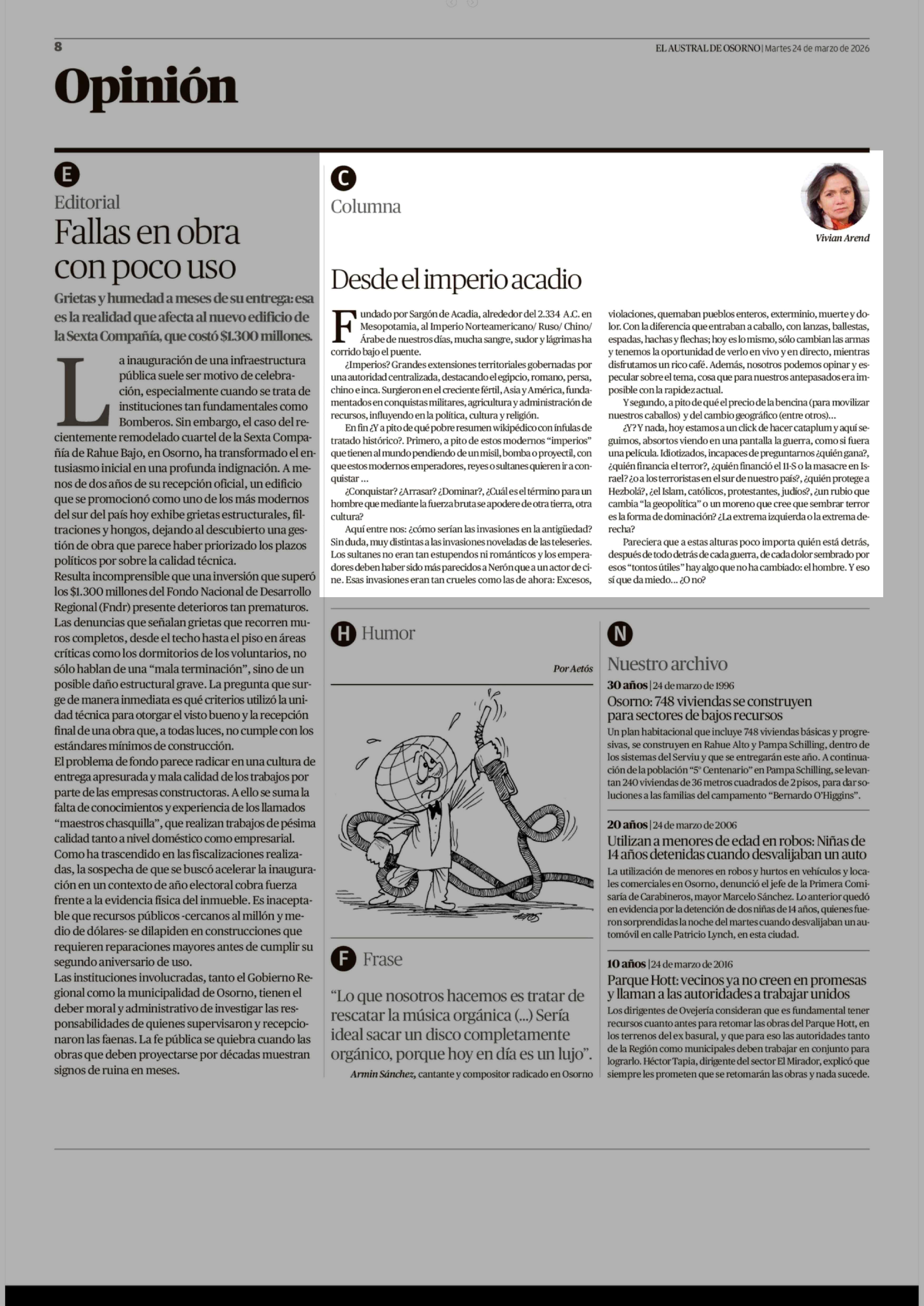 Fecha: 24-03-2026 Sector: Columnas de Opinión Región: Región de Los Lagos