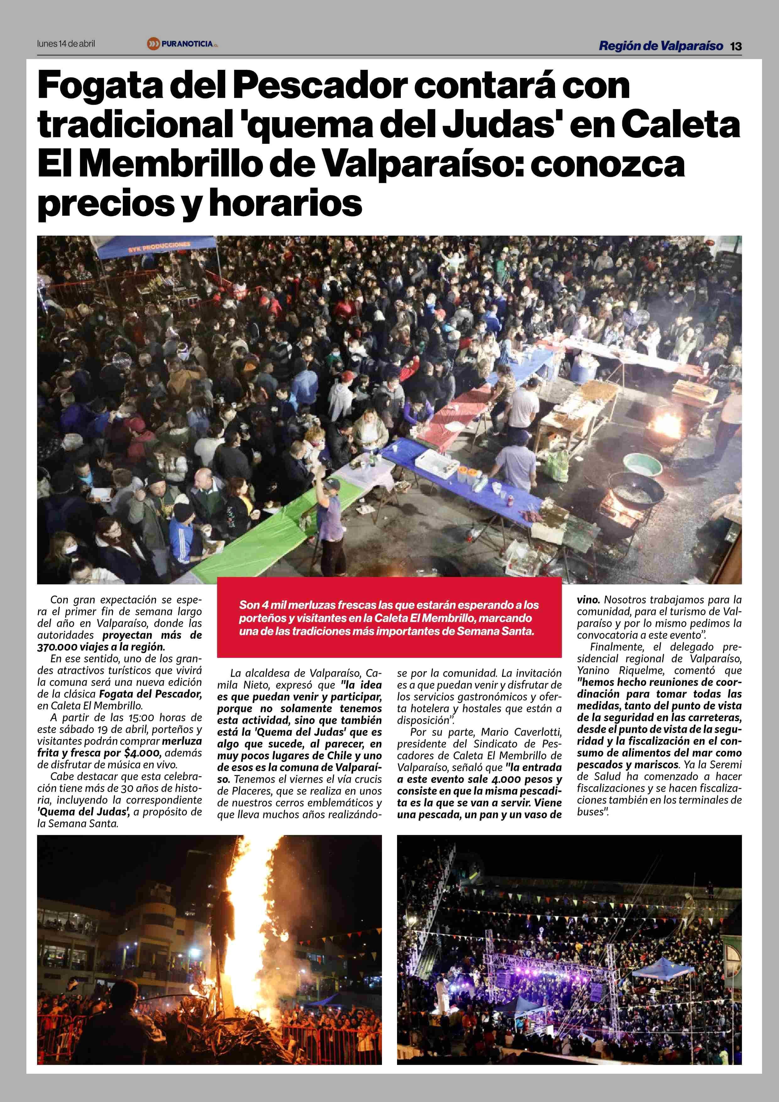 Fogata del Pescador contará con tradicional 'quema del Judas' en Caleta El Membrillo de Valparaíso: conozca precios y horarios 14-04-2025 Puranoticia.cl |