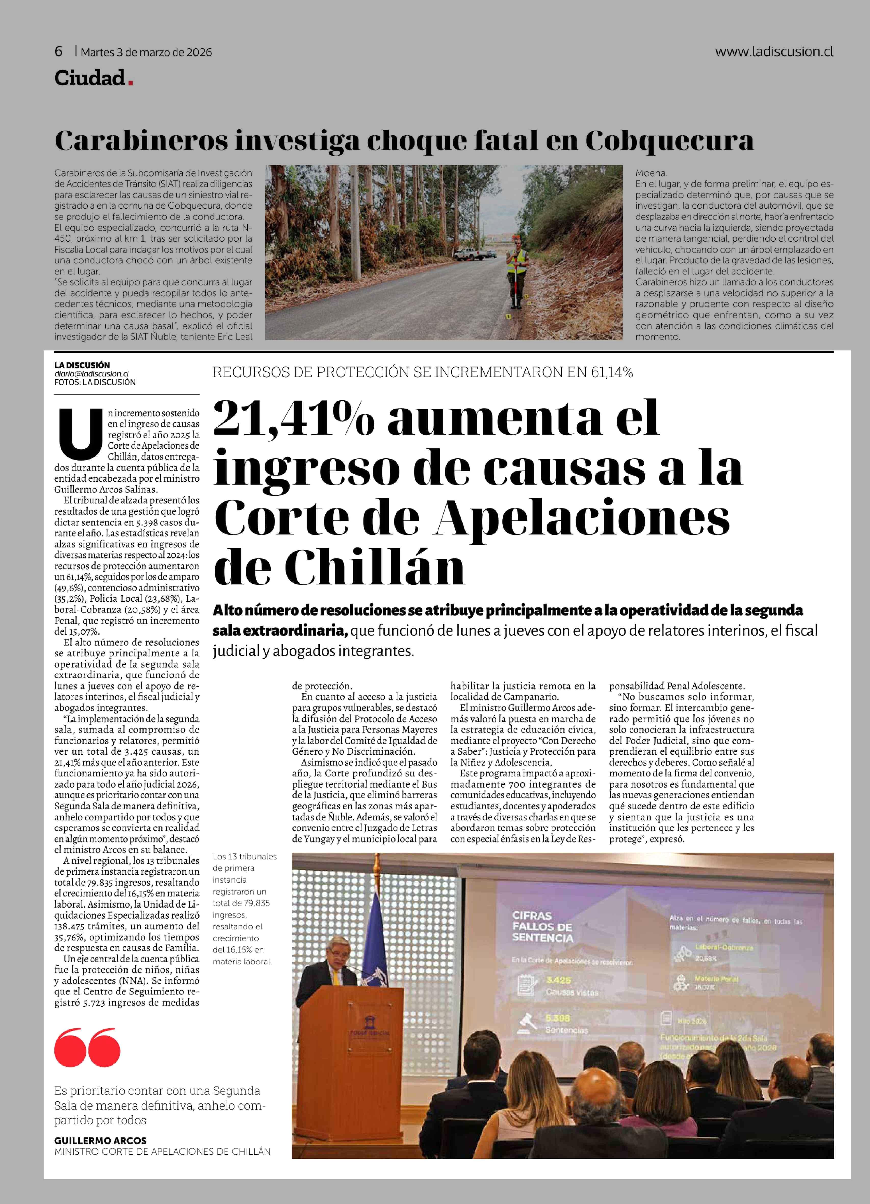 Título: 21,41% Aumenta el ingreso de causas a la Corte de Apelaciones de Chillán