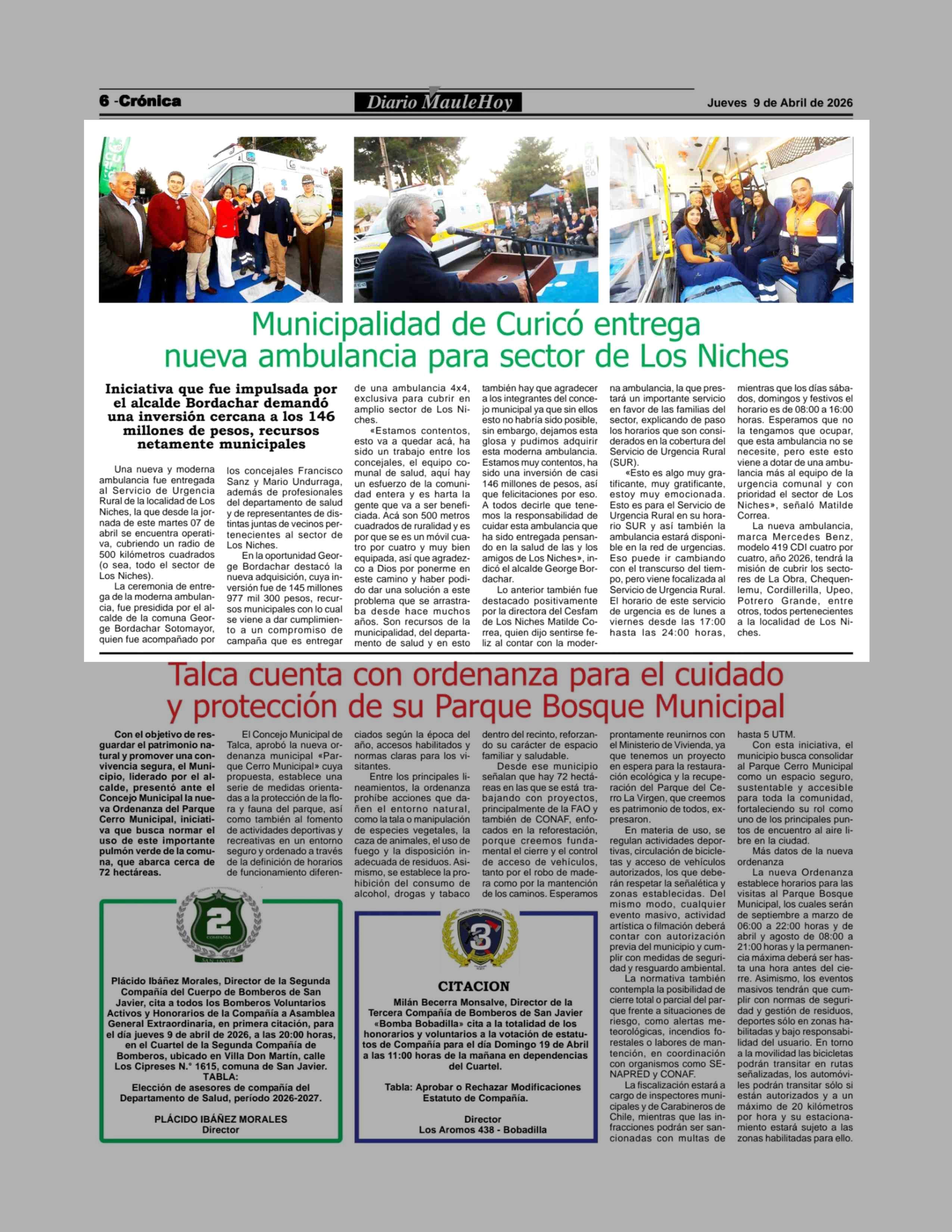 | Fecha: | 09-04-2026 | Sector: | Noticia general | Región: | Región del Maule |