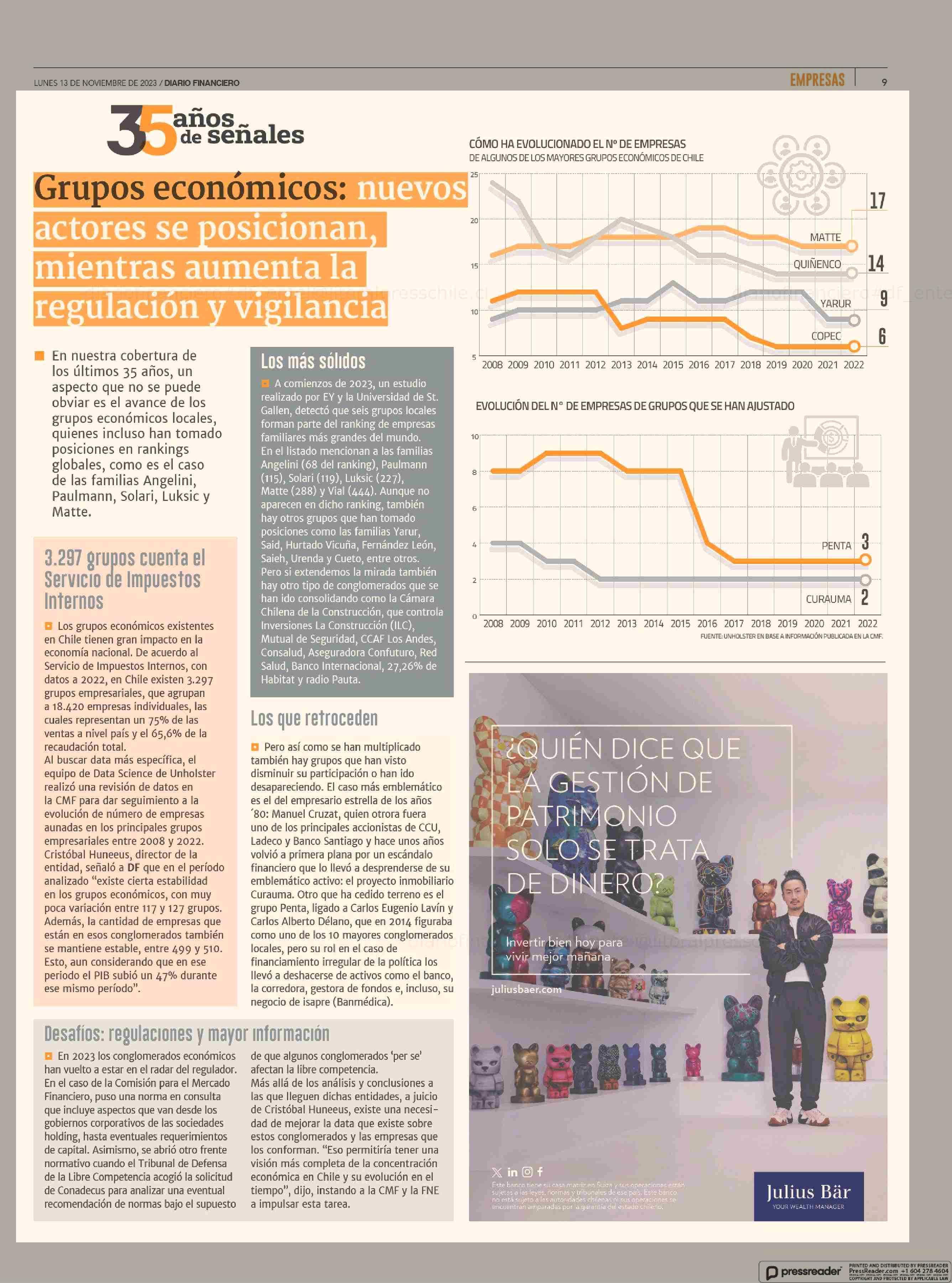 Grupos económicos :nuevos actores se posicionan mientras aumenta la regulación y vigilancia 13-11-2023 Diario Financiero |