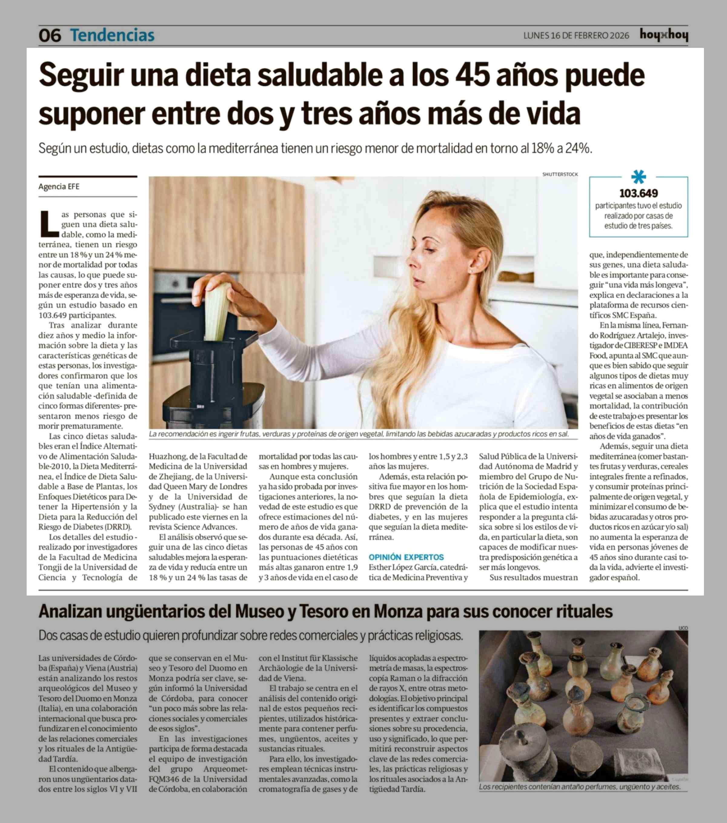 Título: Seguir una dieta saludable a los 45 años puede suponer entre dos y tres años más de vida
