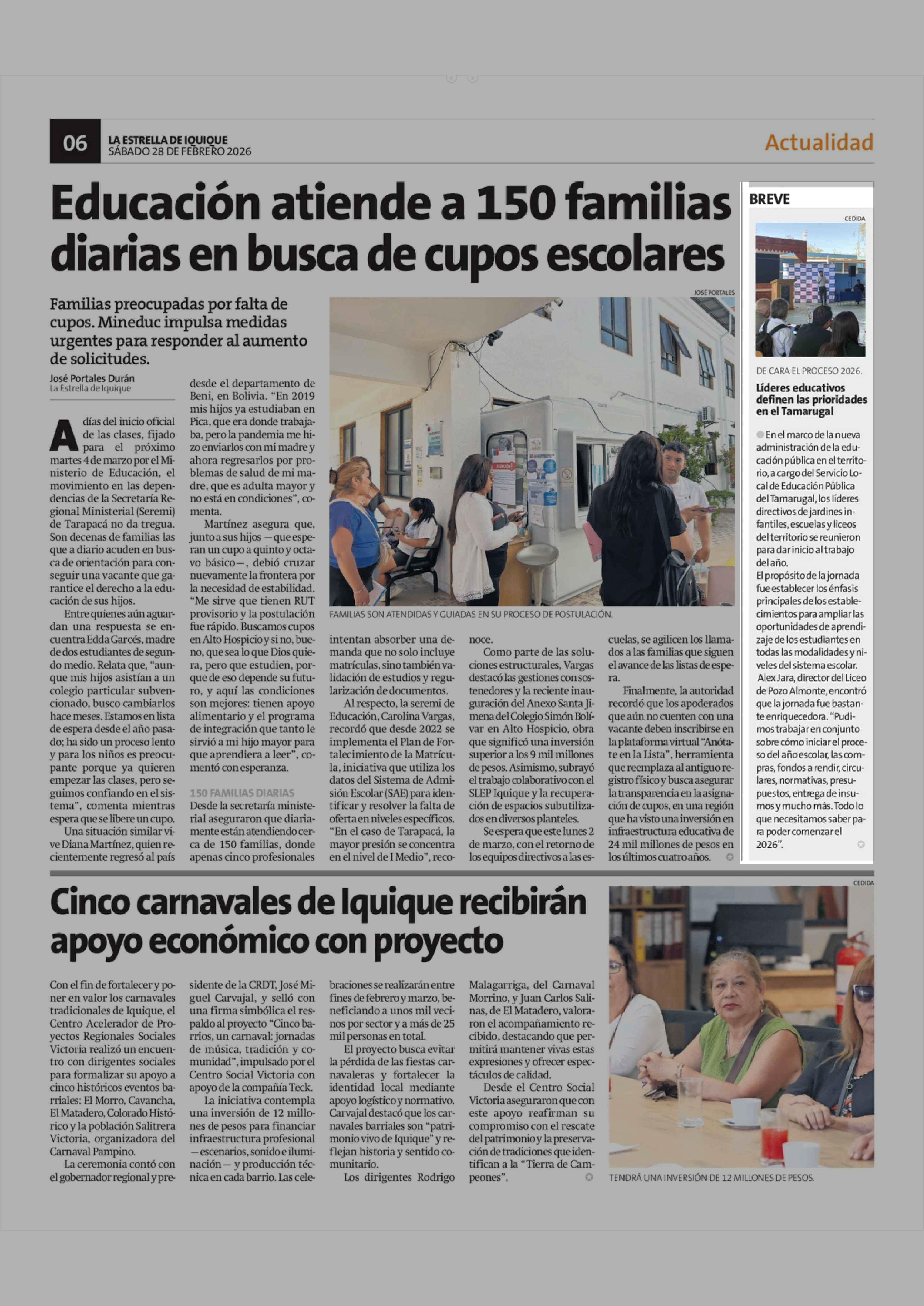 Líderes educativos definen las prioridades en el Tamarugal 28-02-2026 La Estrella de Iquique |